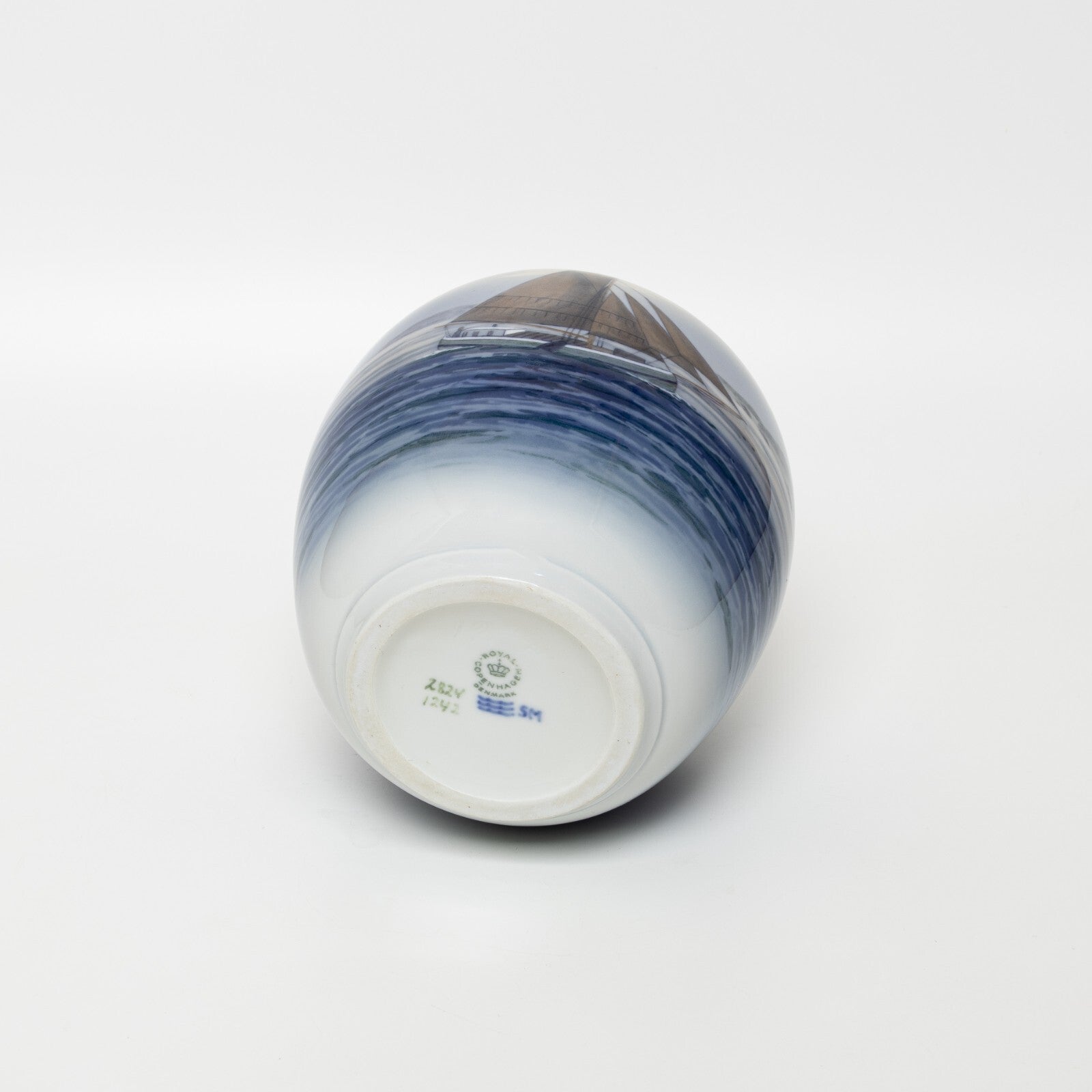 VASO PORCELLANA ROYAL COPENHAGEN "Marina con Barca a Vela" ORIGINALE CM 17
