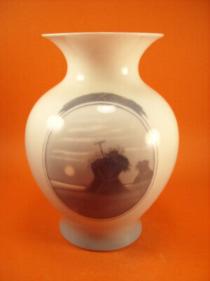 A garanzia di autenticità il vaso reca il marchio della Royal Copenhagen, la Corona sopra le tre Linee Ondulate, e le iniziali del pittore.