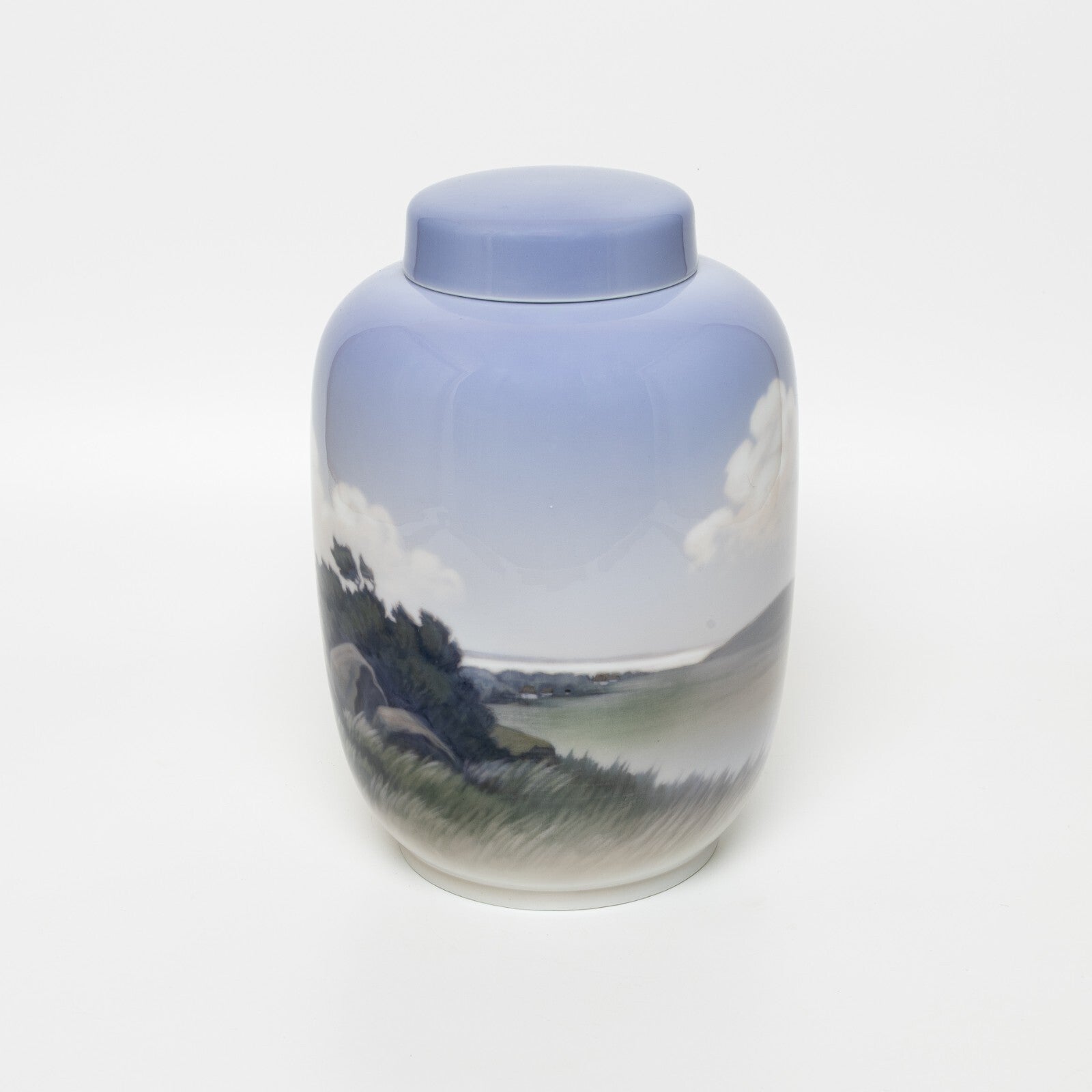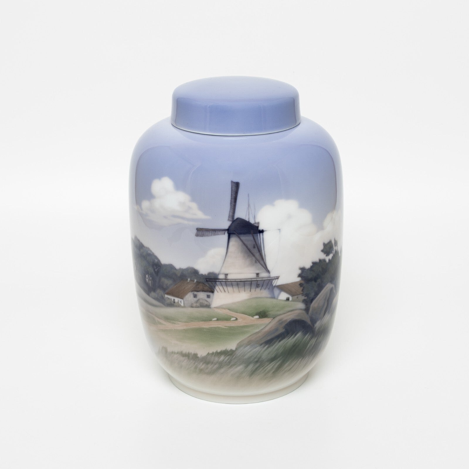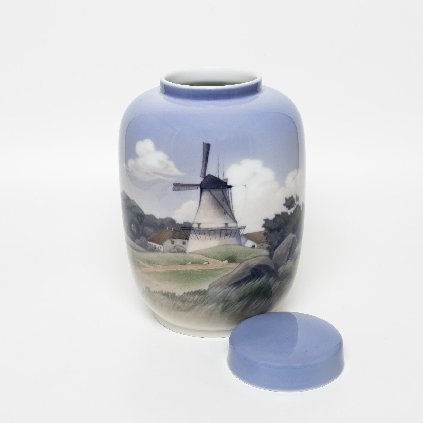 Il vaso urna in porcellana della Royal Copenhagen si intitola "Paesaggio con Mulino" ed è identificato dal codice "2634/888".