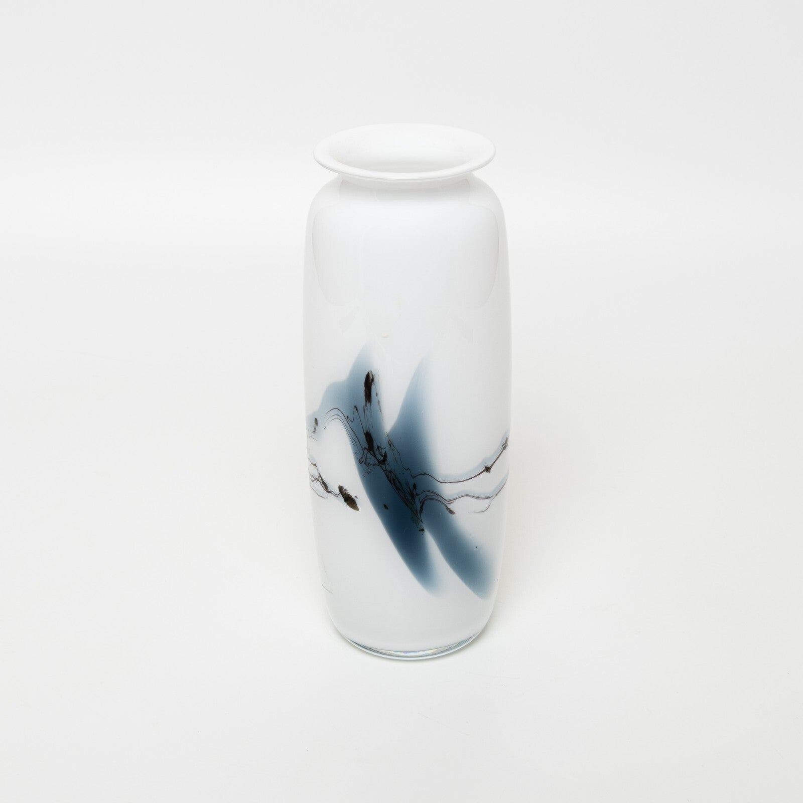 VASO VETRO OPALINO BIANCO CON DECORO BLU HOLMEGARD ATLANTIS MICHAEL BANG CM 20