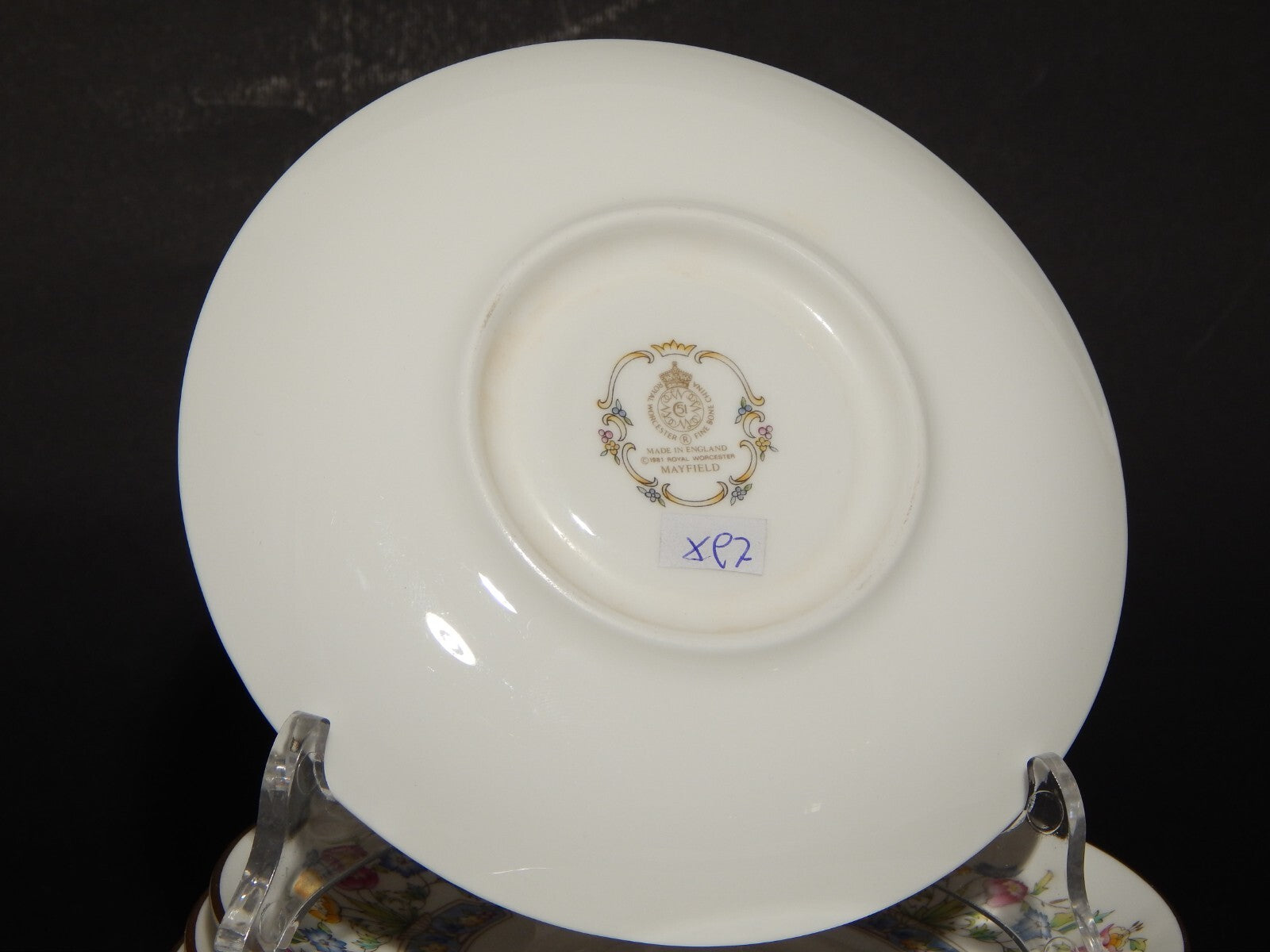 VINTAGE 6 PIATTINI SOTTO TAZZA MAYFIELD PORCELLANA ROYAL WORCESTER DEL 1981