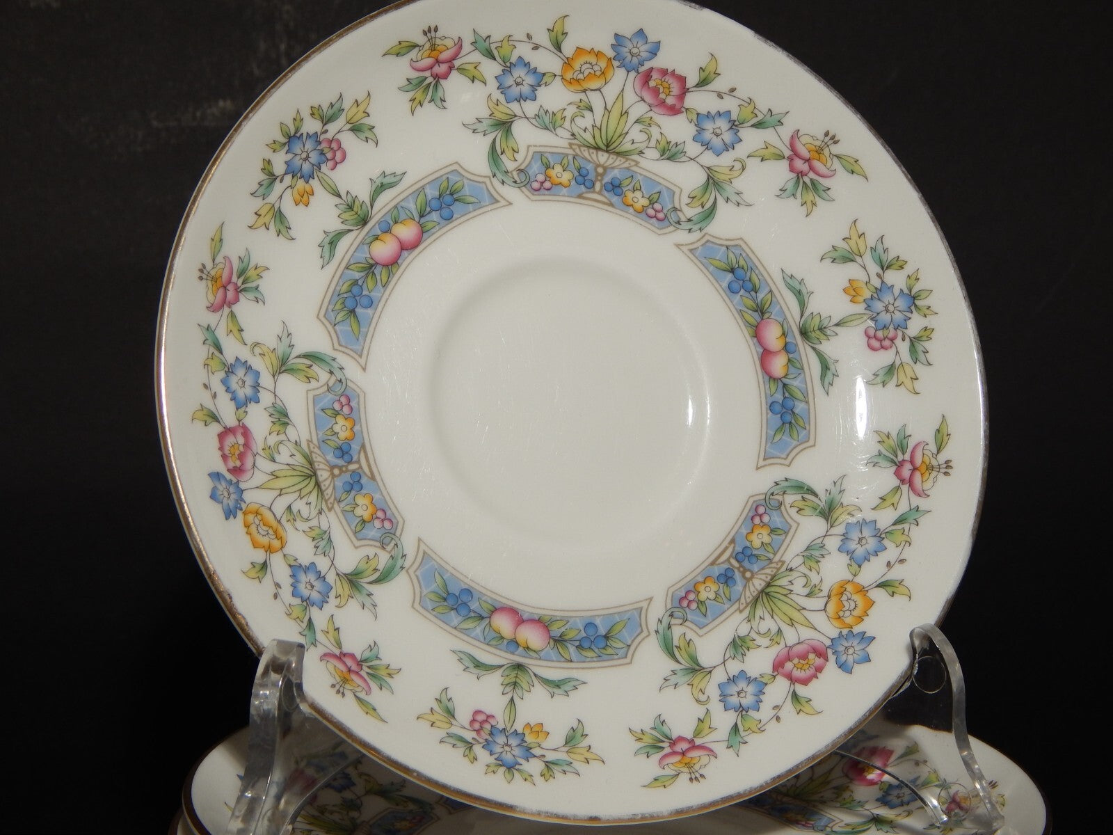 In questa inserzione vengono presentati 6 piattini sotto tazza vintage in porcellana realizzati nel 1981 dalla manifattura inglese Royal Worcester nel disegno stampato a mano Mayfield