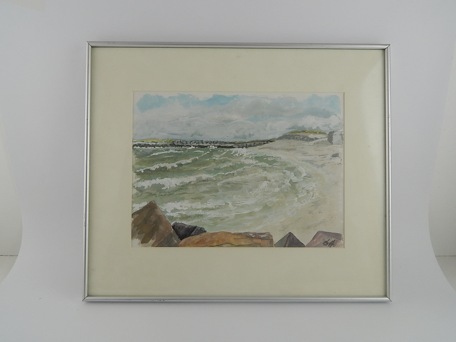 In questa inserzione viene presentato un acquerello raffigurante una spiaggia sul mare del nord l'acquerello è firmato e misura 30 x 23, con la cornice 44 x 37,5 cm.