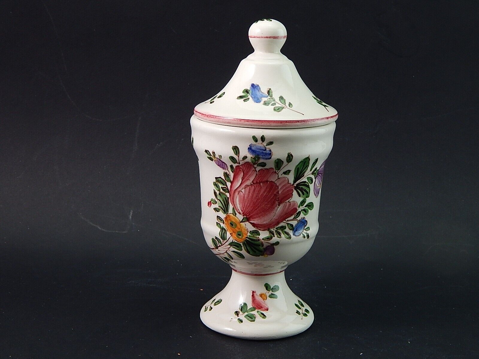 In questa inserzione viene presentato un albarello o vaso con coperchio in maiolica realizzato e dipinto a mano nella bottega delle ceramiche Pagani di Lodi