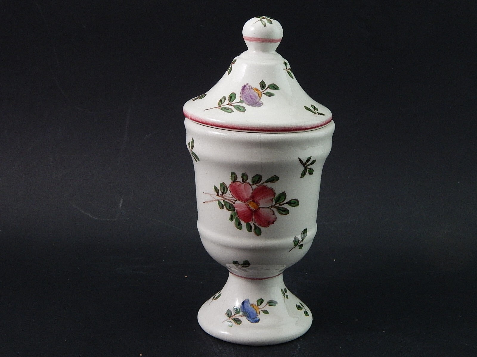 In questa inserzione viene presentato un albarello o vaso con coperchio in maiolica realizzato e dipinto a mano nella bottega delle ceramiche Pagani di Lodi