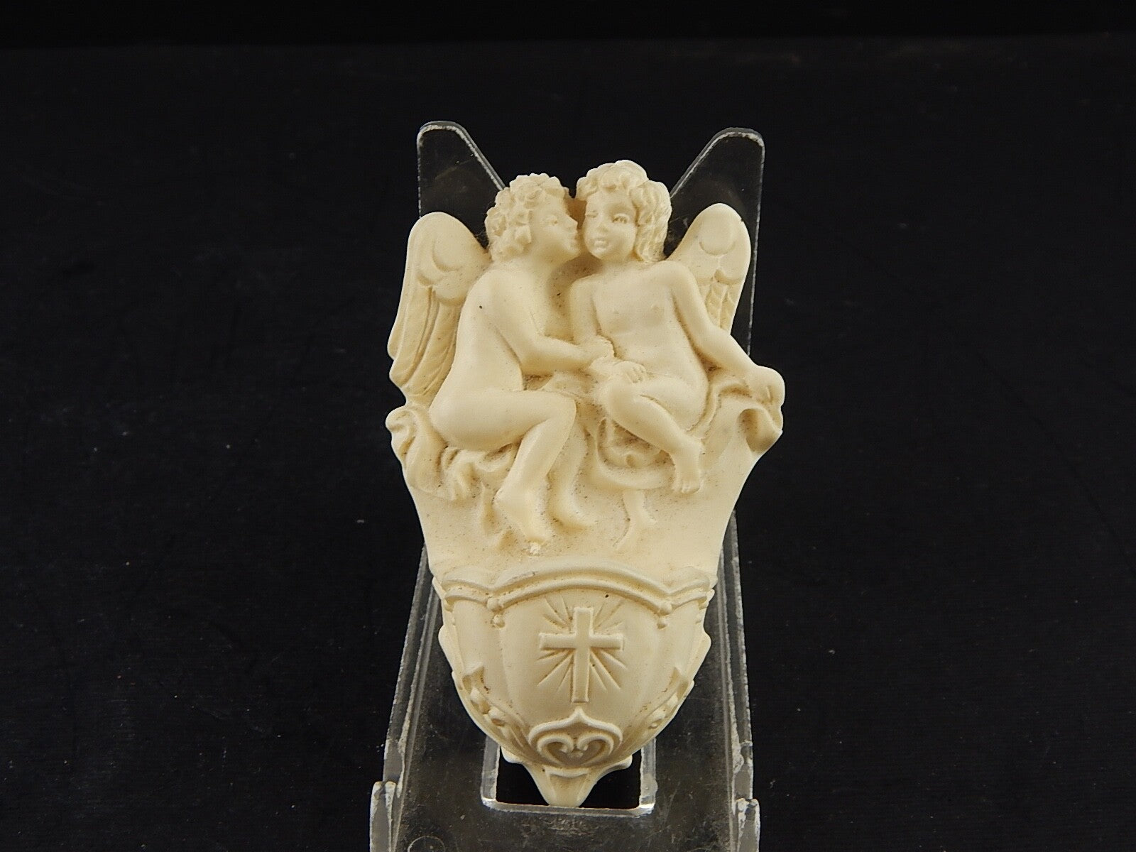 VINTAGE ARTE SACRA ACQUASANTIERA IN RESINA CHERUBINI ANGIOLETTI