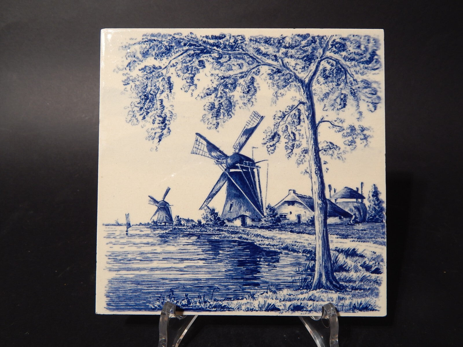 VINTAGE AUTENTICA PIASTRELLA MATTONELLA PORCELLANA DI DELFTS BLAUW BIANCO BLU