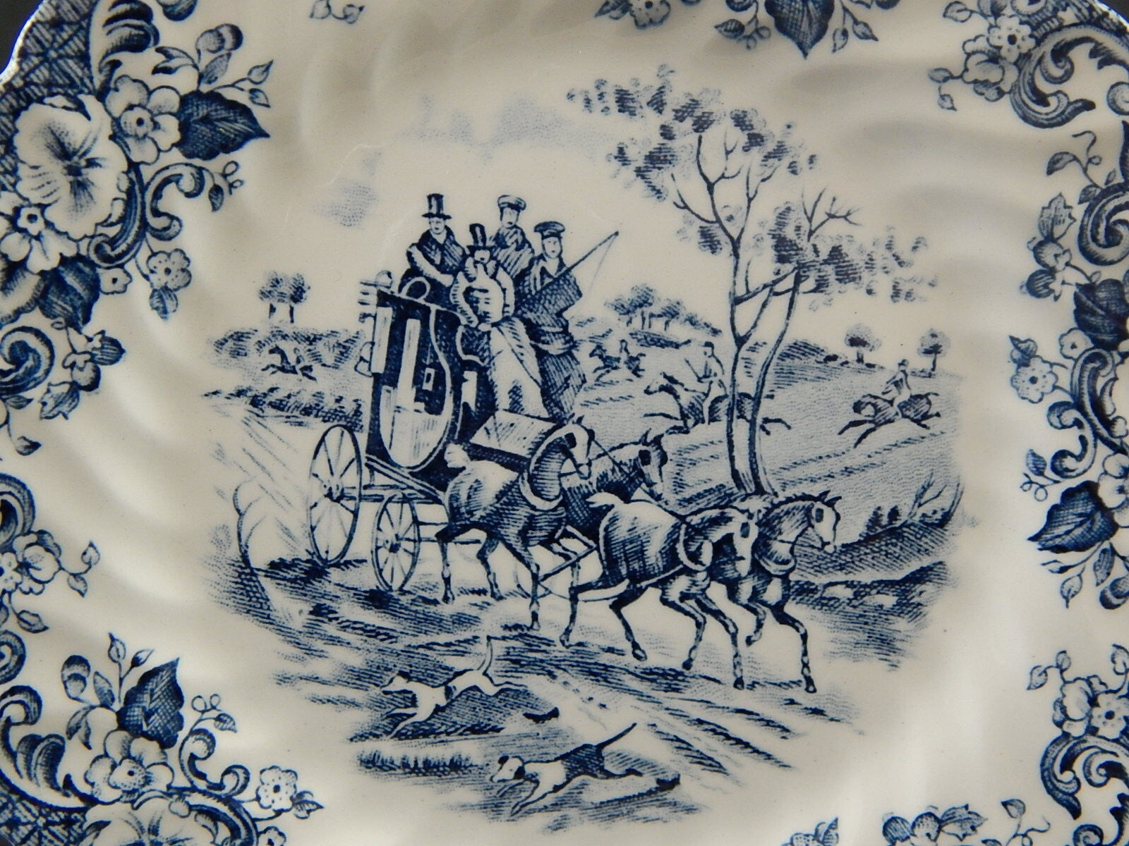 In questa inserzione viene presentato un piatto di porcellana realizzato dalla rinomata manifattura inglese Johnson Bros, nel decoro Coaching Scene