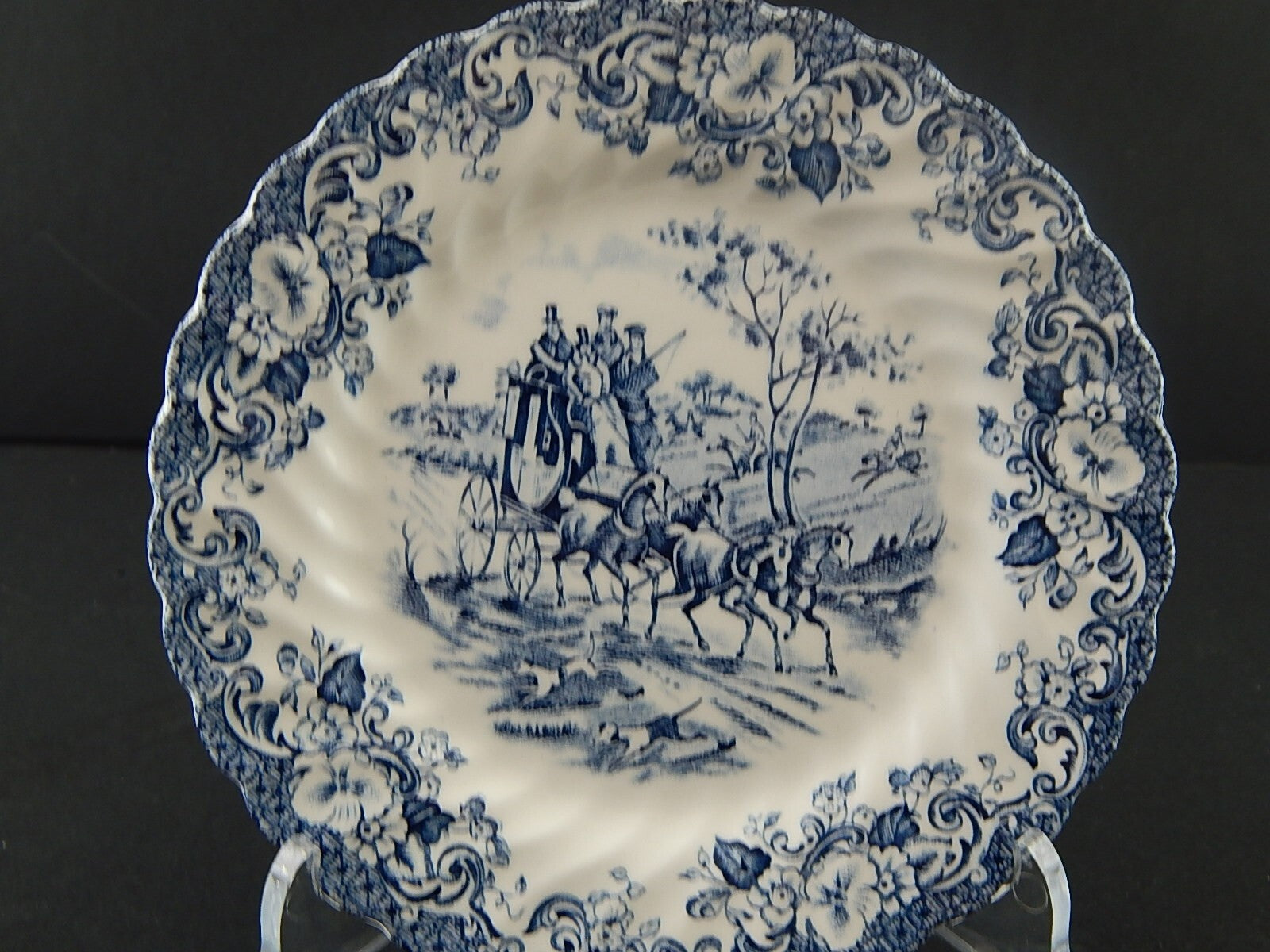 VINTAGE PIATTO CM 16 PORCELLANA JOHNSON BROS COACHING SCENE BIANCO BLU