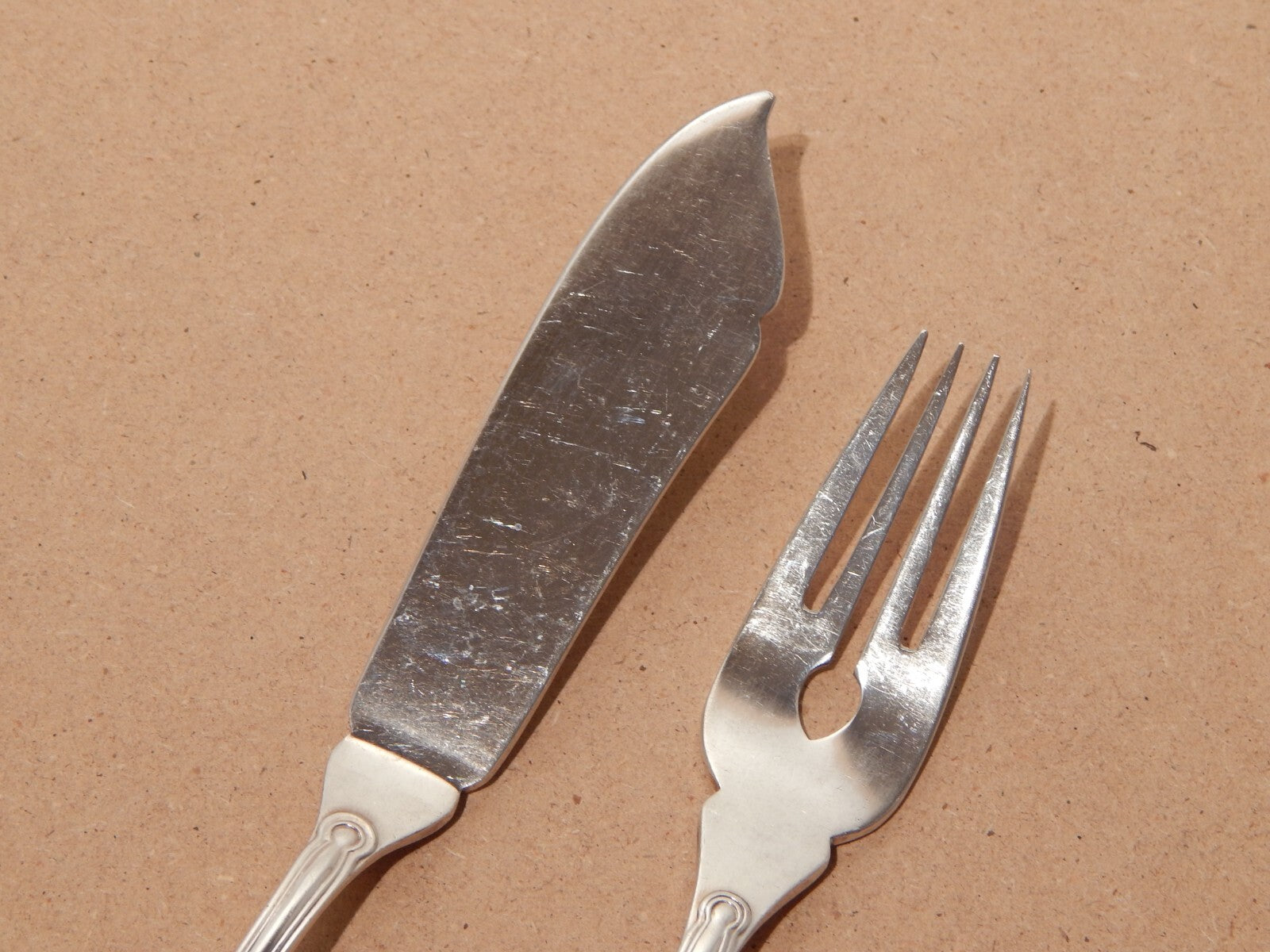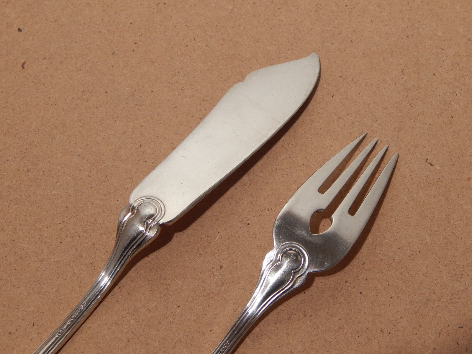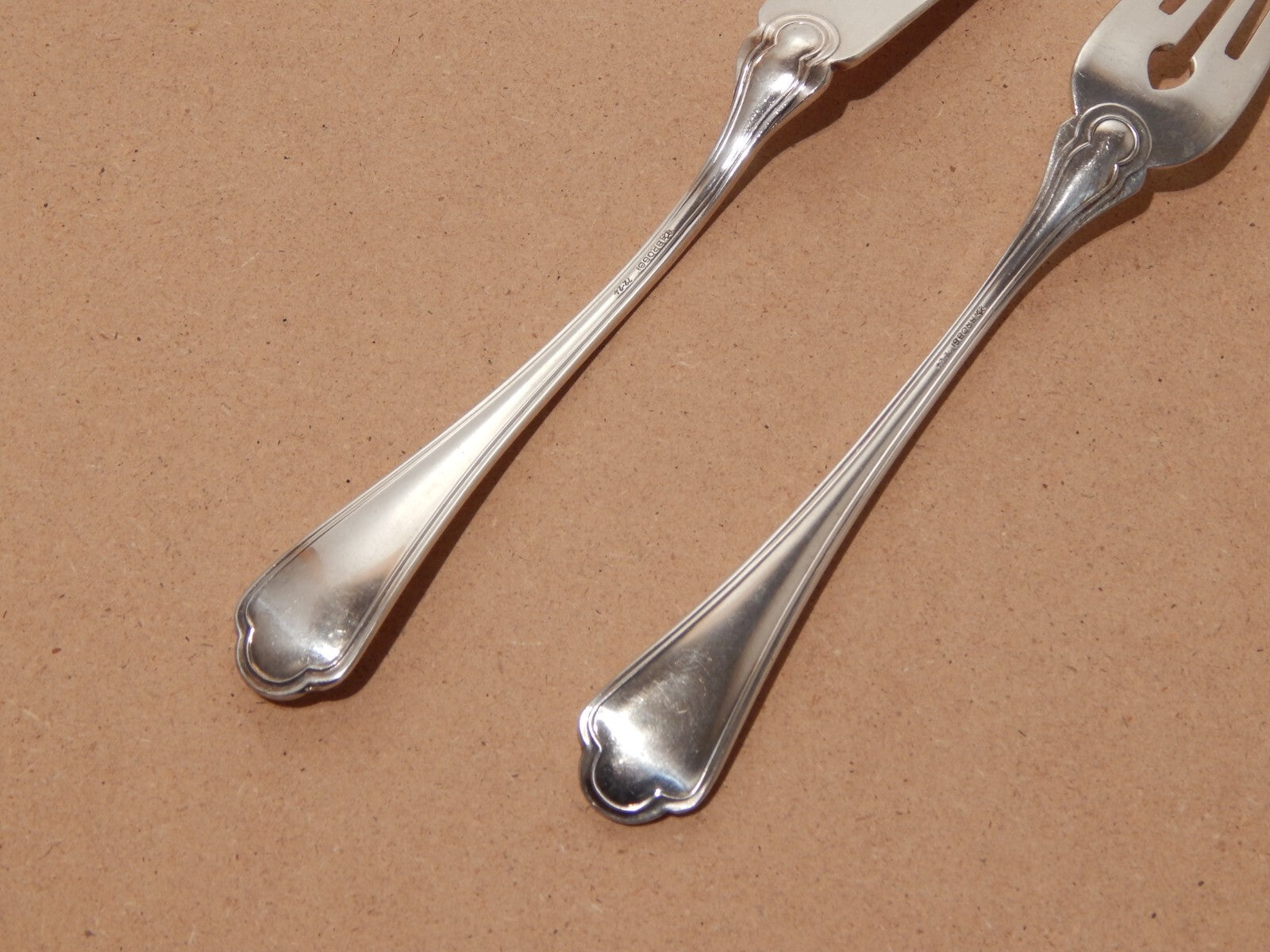 VINTAGE BROGGI MILANO SET 12 POSATE PESCE ALPACCA ARGENTATE MODELLO SERBELLONI