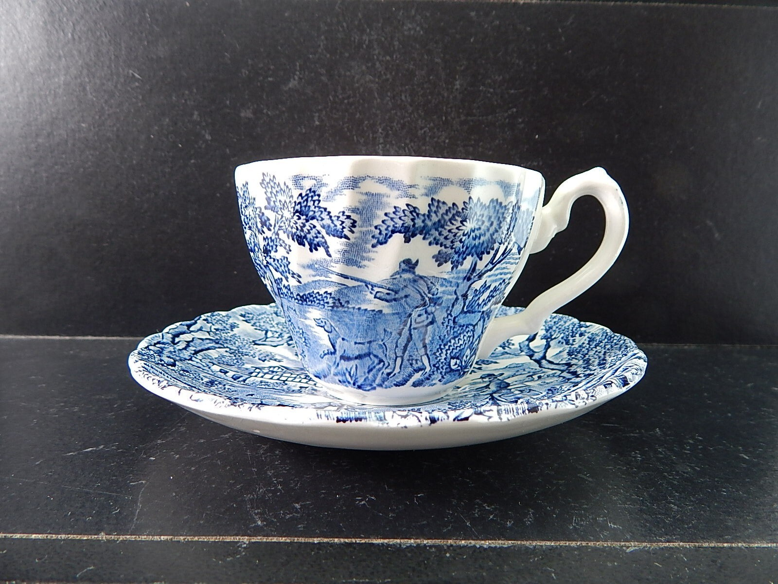 In questa inserzione viene presentata una tazza da tè con relativo piattino di ceramica inglese realizzato dalla manifattura Myott Staffordshire nel decoro The Hunter