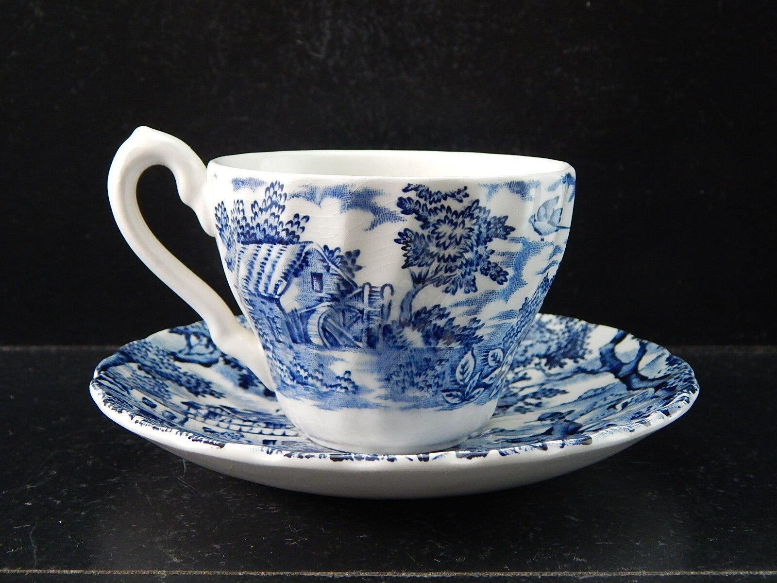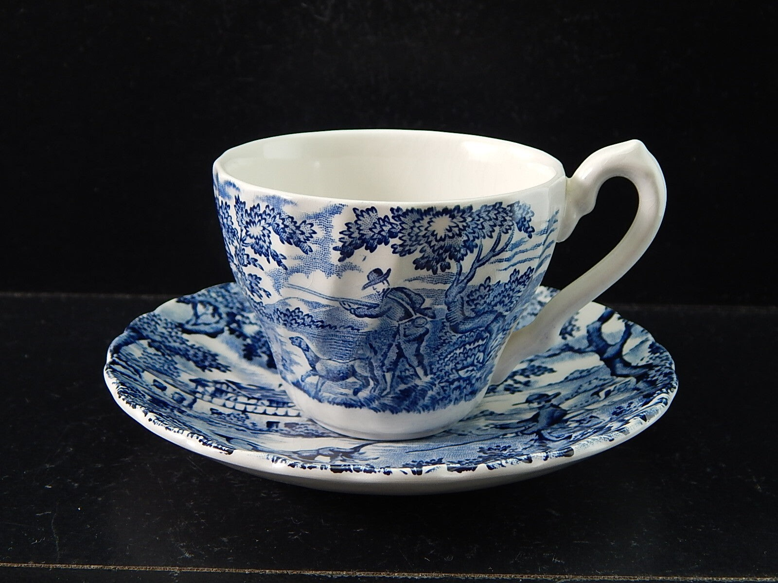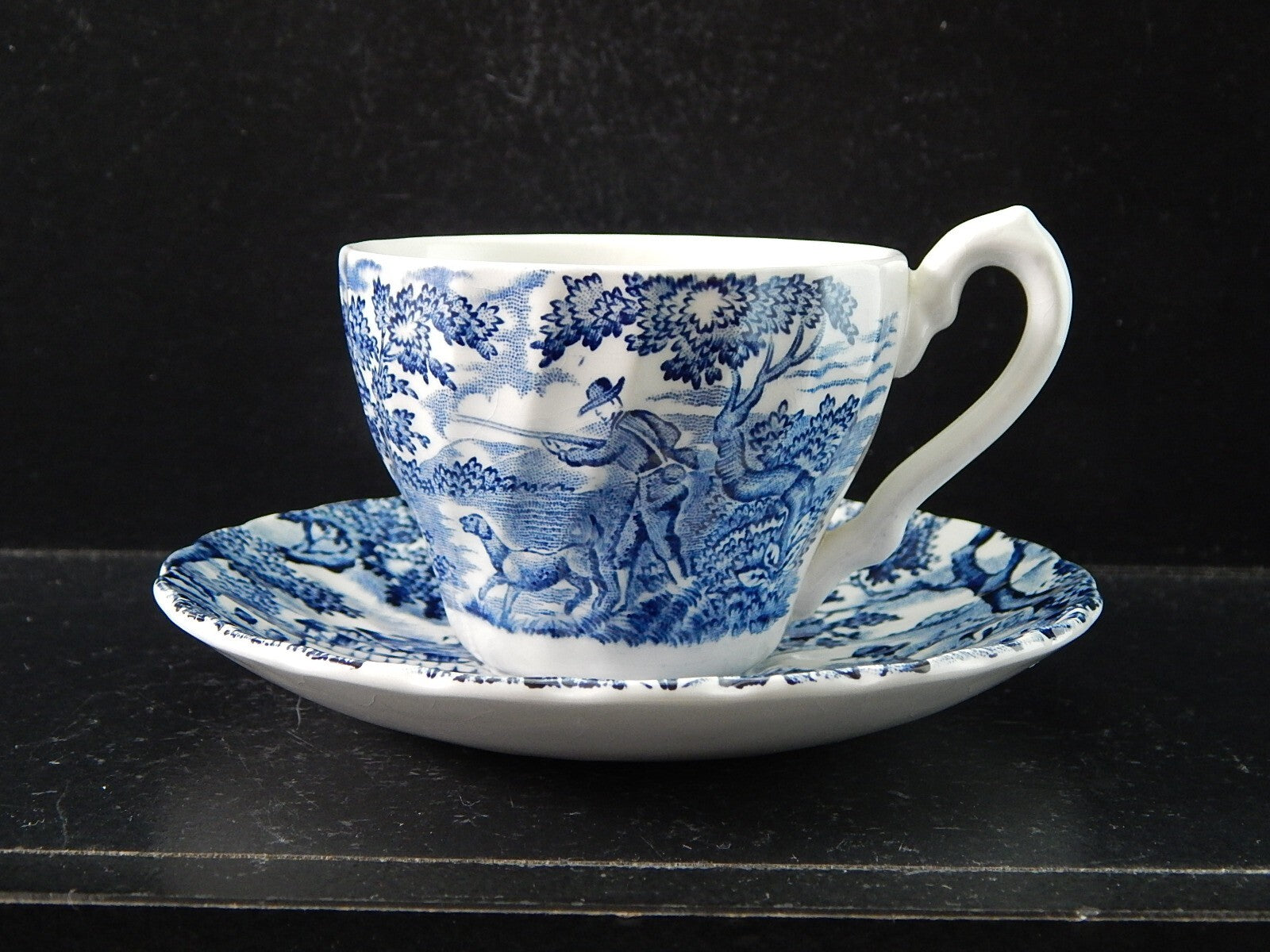 In questa inserzione viene presentata una tazzina con relativo piattino di ceramica inglese realizzato dalla manifattura Myott Staffordshire nel decoro The Hunter
