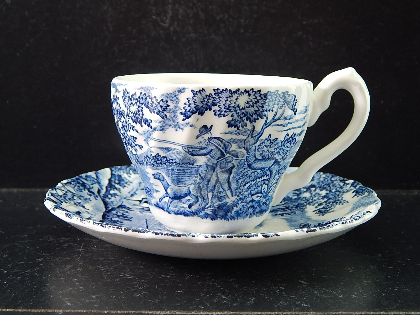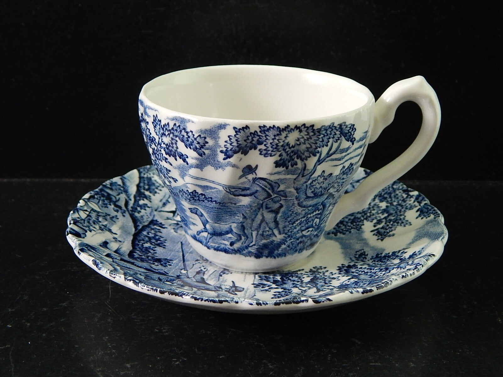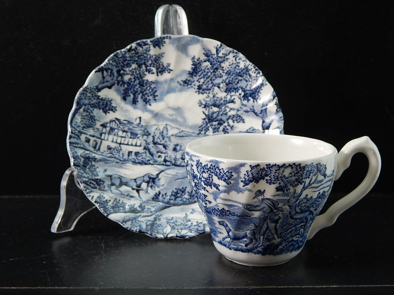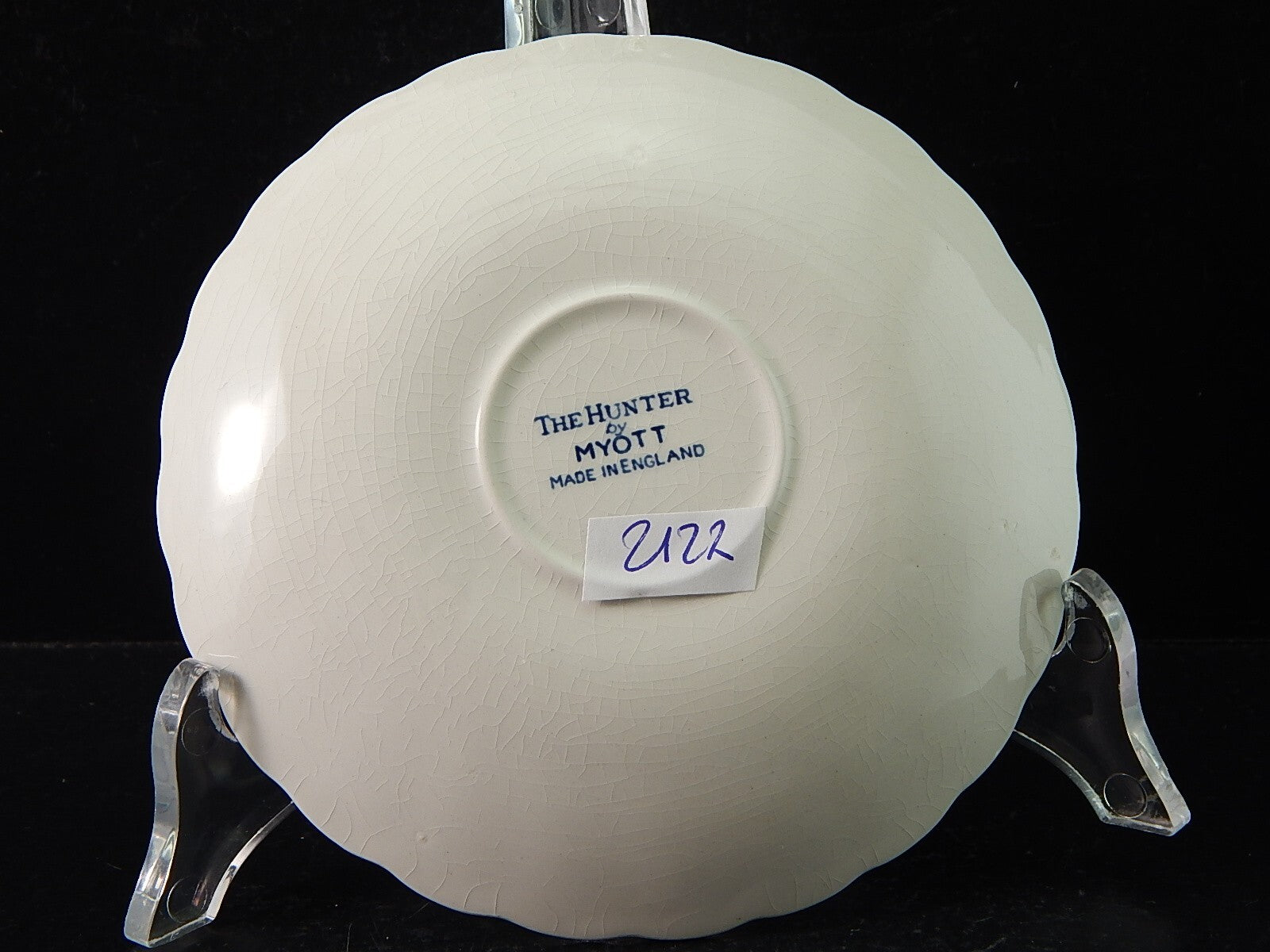 In questa inserzione viene presentata una tazzina con relativo piattino di ceramica inglese realizzato dalla manifattura Myott Staffordshire nel decoro The Hunter