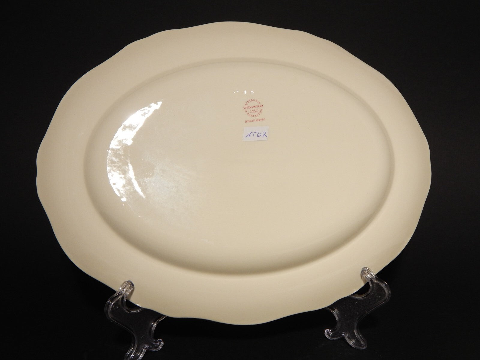 In questa inserzione viene presentato un vassoio ovale in ceramica color avorio realizzata dalla rinomata manifattura inglese Wedgwood nella forma Queens Shape