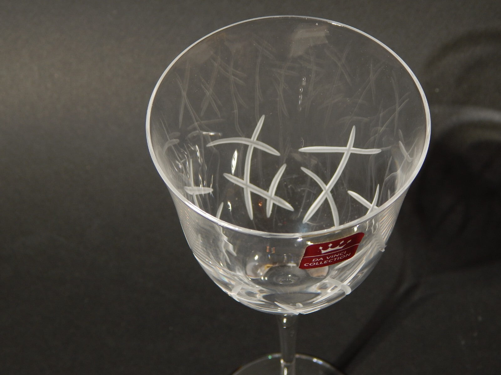 In questa inserzione viene presentato un elegante e prezioso set composto da 6 bicchieri a calice di cristallo della collezione da Vinci realizzati dalla cristalleria italiana RCR