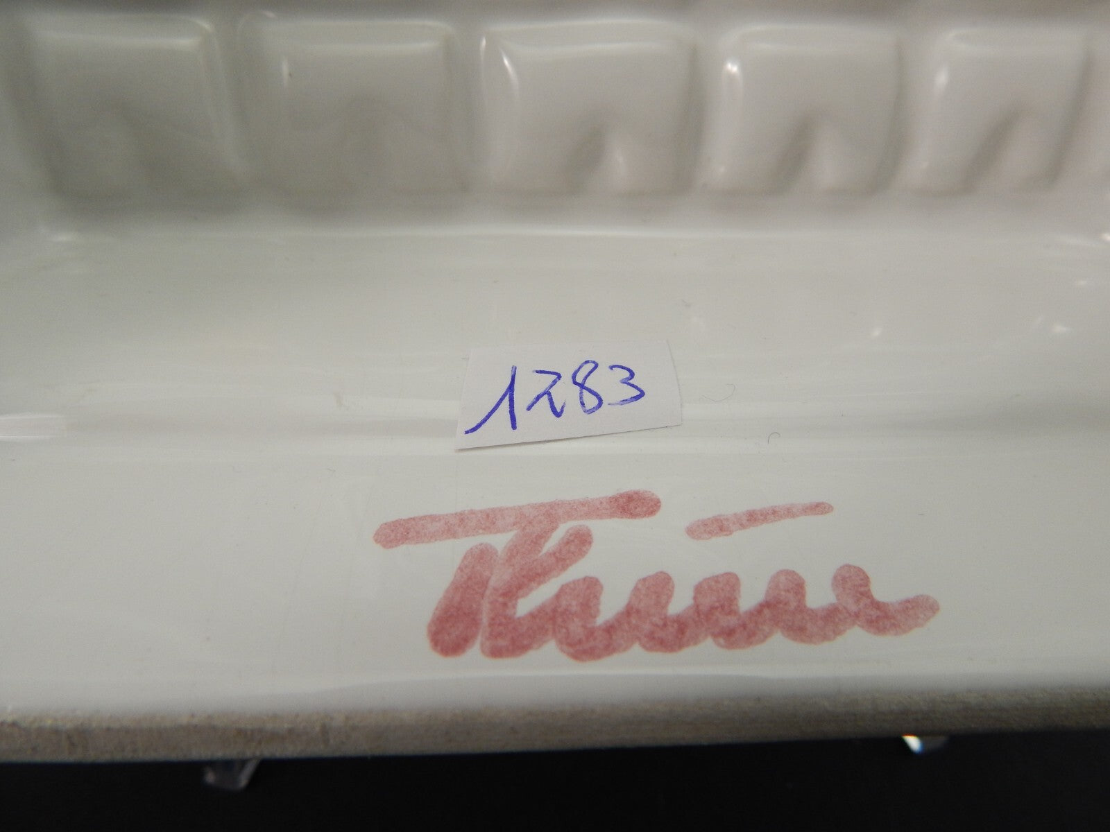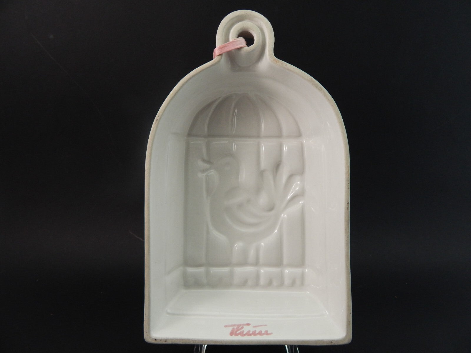 In questa inserzione viene presentata una ormai molto rara formella da collezione Thun raffigurante una gabbia con uccellino realizzata in ceramica bianca e decorata. a mano in rosa