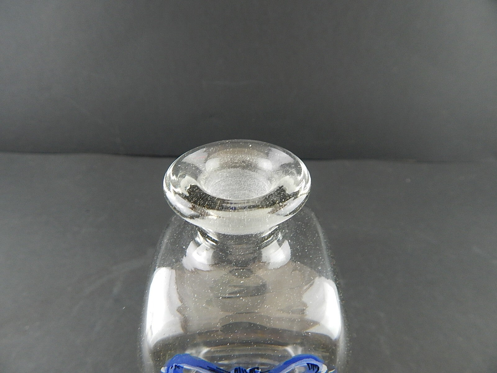 In questa inserzione viene presentata una bottiglia in vetro soffiato e decorata a mano da collezione, realizzata dalla manifattura danese Holmegaard.