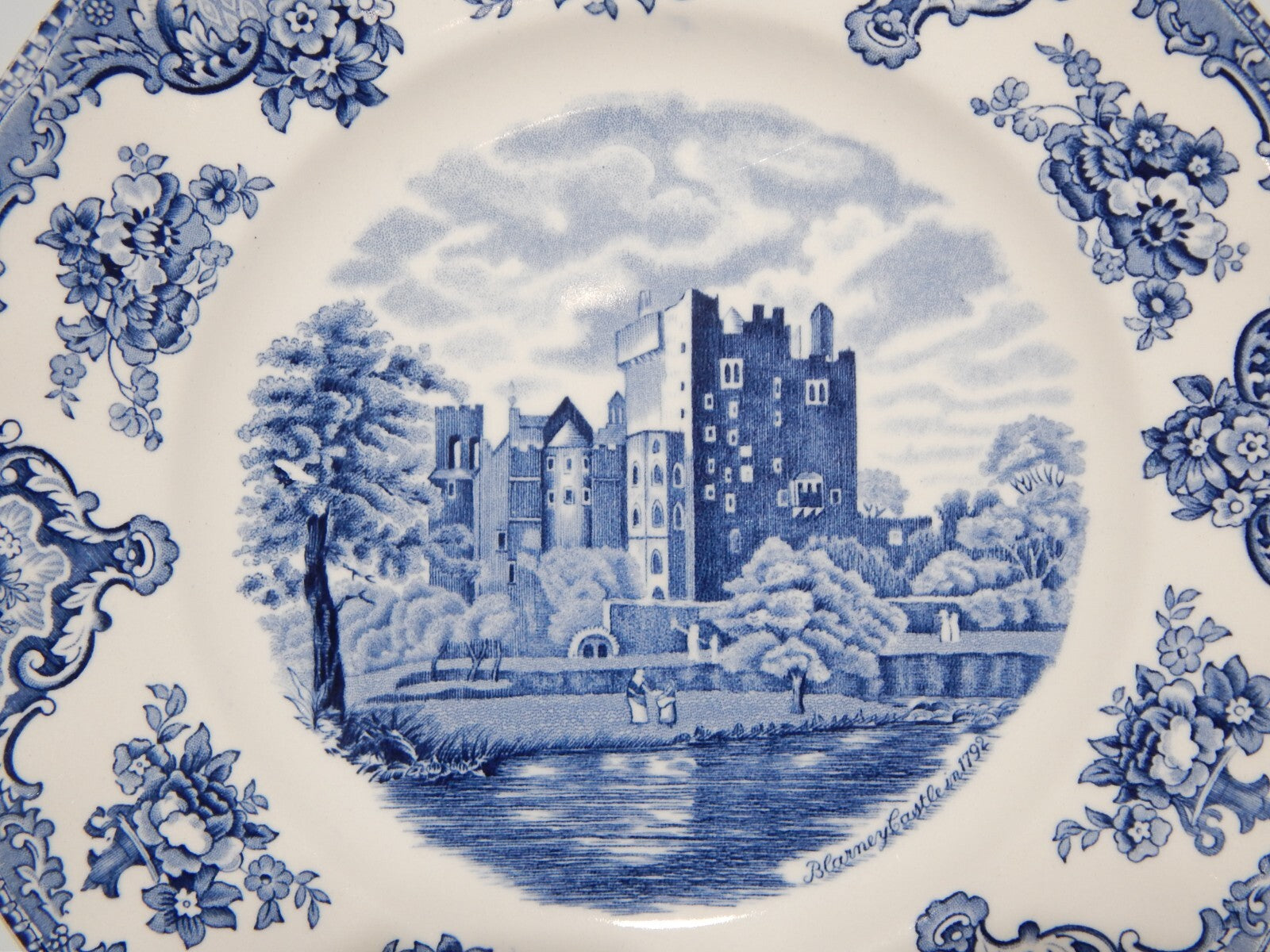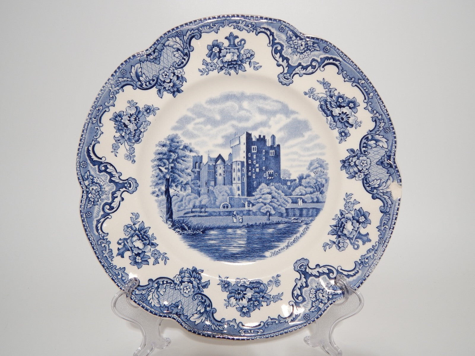 In questa inserzione viene presentato un piatto piano in semi-porcellana della collezione Old Britain Castle blu realizzato dalla manifattura inglese Johnson Bros.