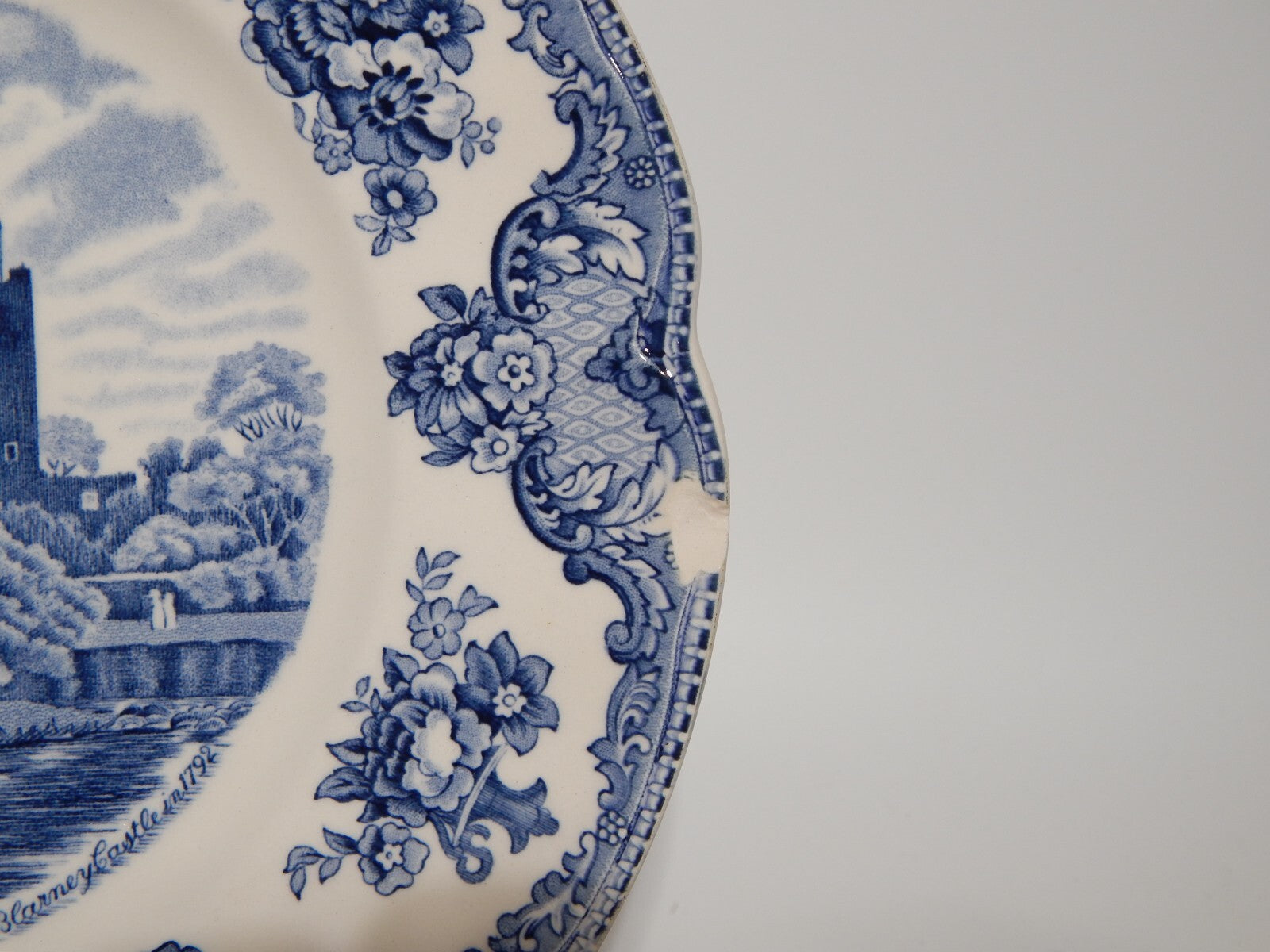 VINTAGE JOHNSON BROS OLD BRITAIN CASTLE BLU PIATTO PIANO PORCELLANA DIFETTO 1907