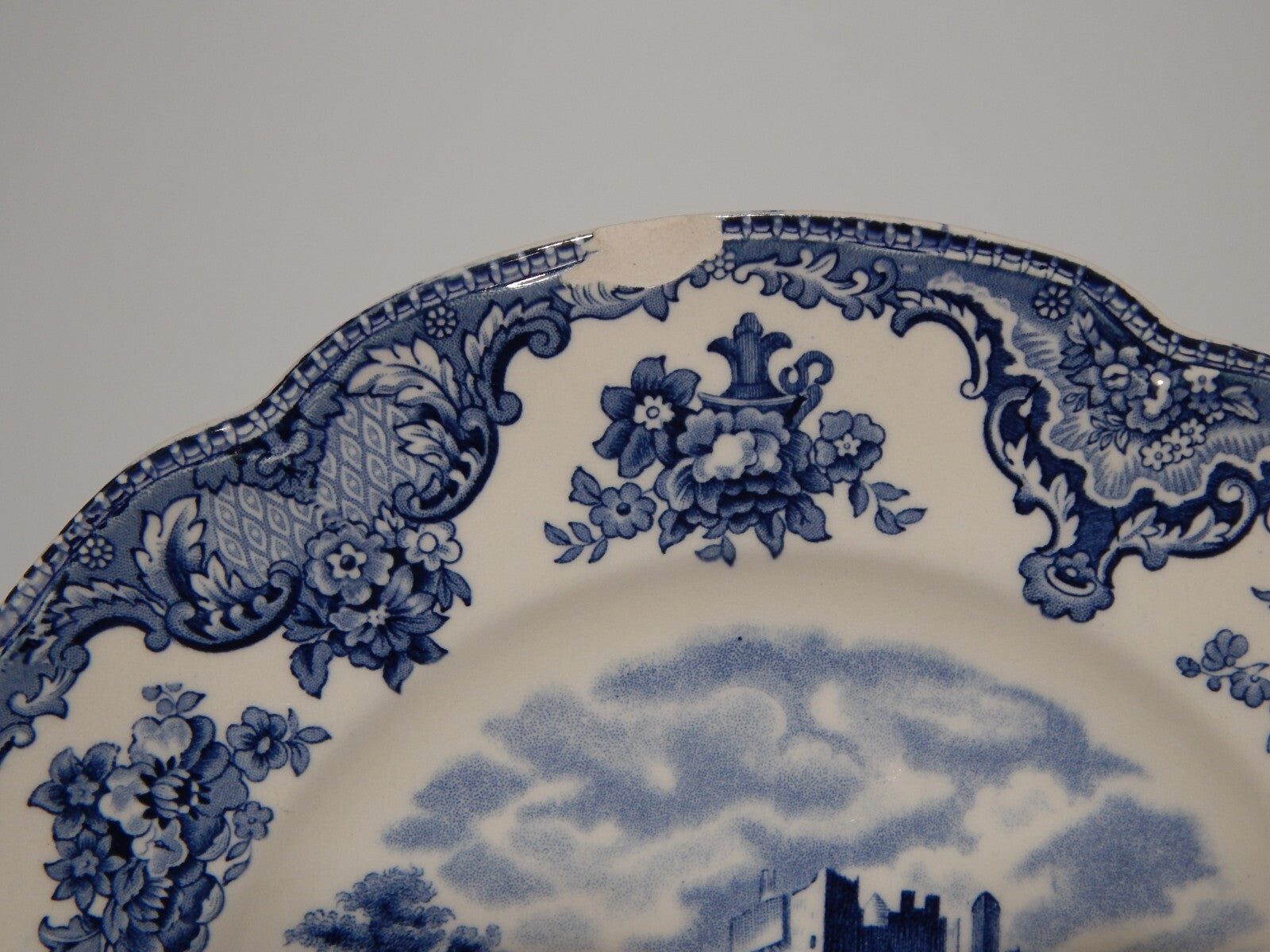 VINTAGE JOHNSON BROS OLD BRITAIN CASTLE BLU PIATTO PIANO PORCELLANA DIFETTO 1910