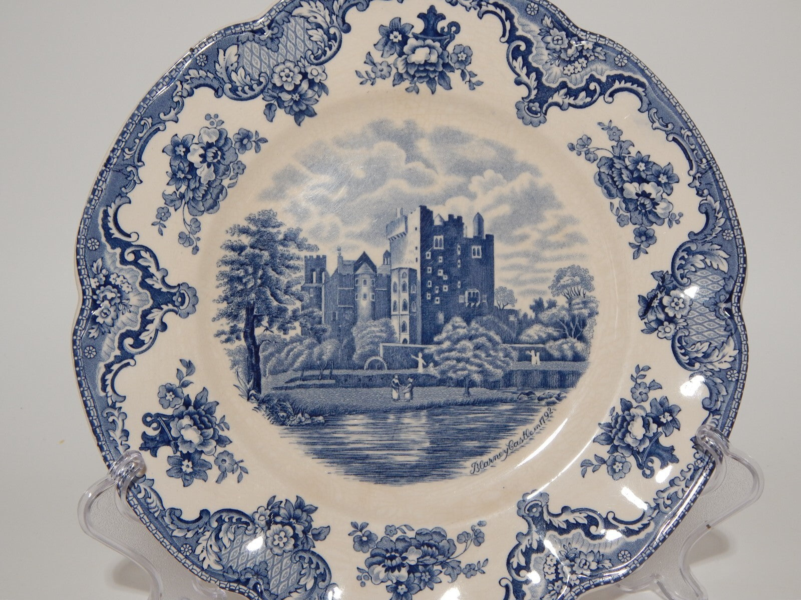 VINTAGE JOHNSON BROS OLD BRITAIN CASTLE BLU PIATTO PIANO PORCELLANA DIFETTO 1919