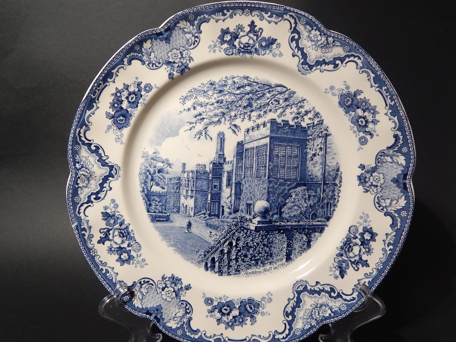 VINTAGE JOHNSON BROS OLD BRITAIN CASTLE BLU VASSOIO ROTONDO SEMI-PORCELLANA