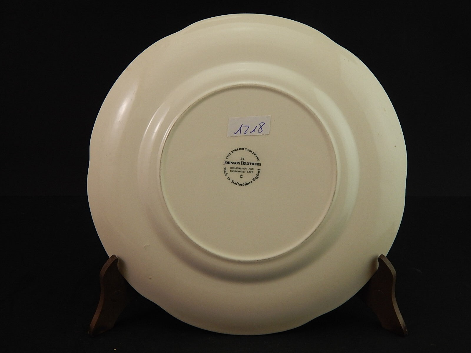 In questa inserzione viene presentato piatto da dessert in semi porcellana della collezione Old Britain Castle realizzato dalla manifattura inglese Johnson Bros.