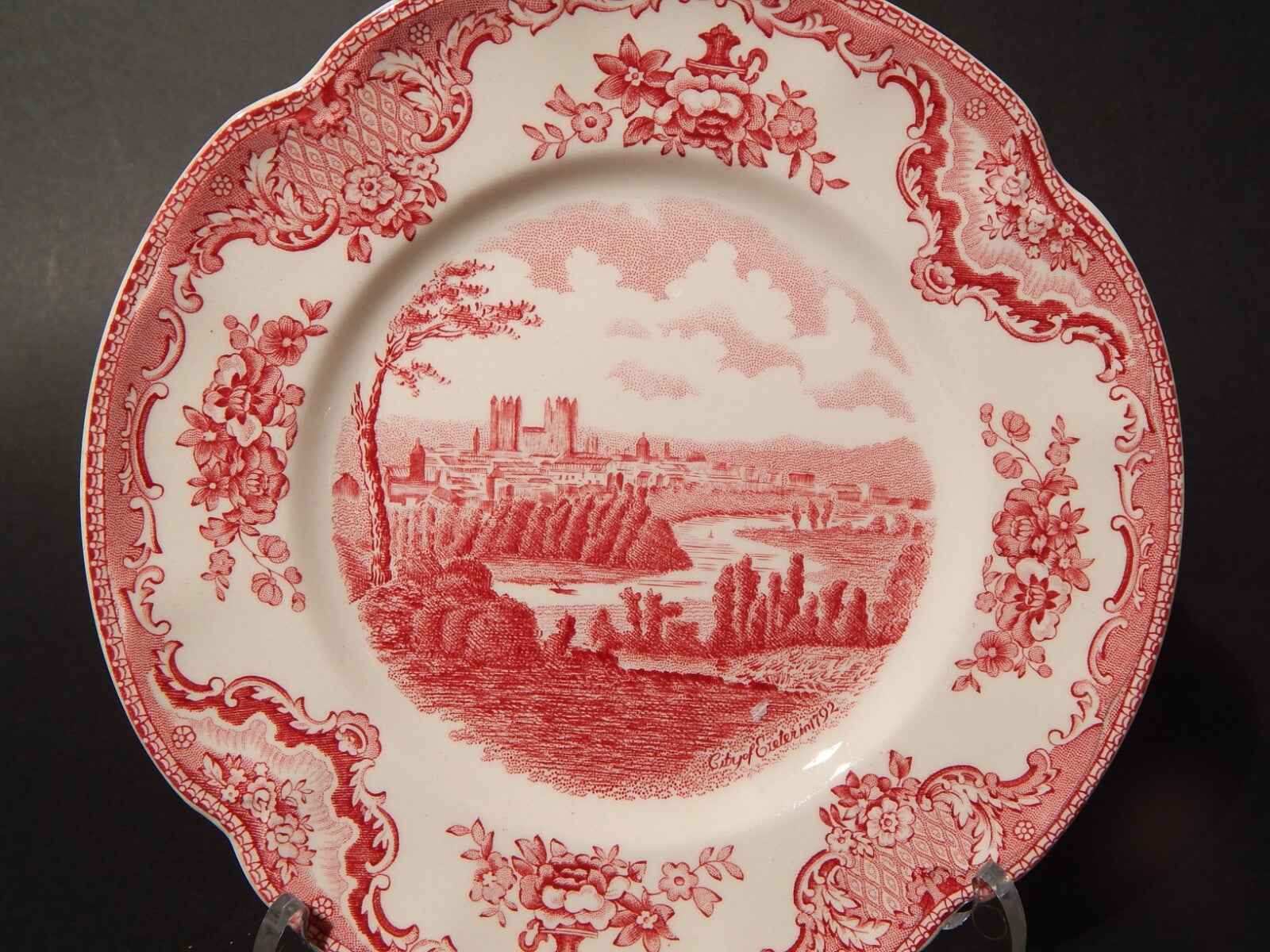 VINTAGE JOHNSON BROS OLD BRITAIN CASTLE PIATTO DOLCE SEMI PORCELLANA ROSSO
