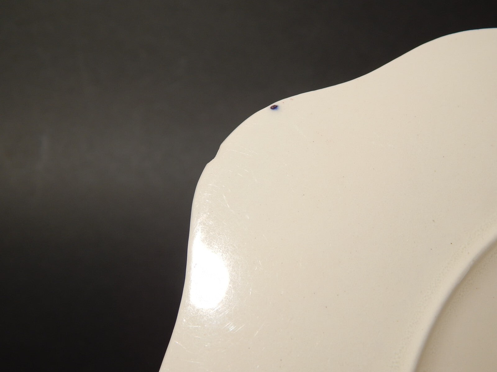 Il piatto misura 19 cm per lato, come si può vedere dalle foto una piccola scheggiatura sul bordo