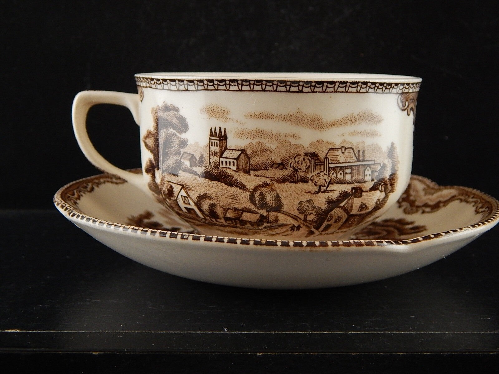 VINTAGE JOHNSON BROS OLD BRITAIN CASTLE SERVIZIO 6 TAZZE DA TE' SEMI PORCELLANA