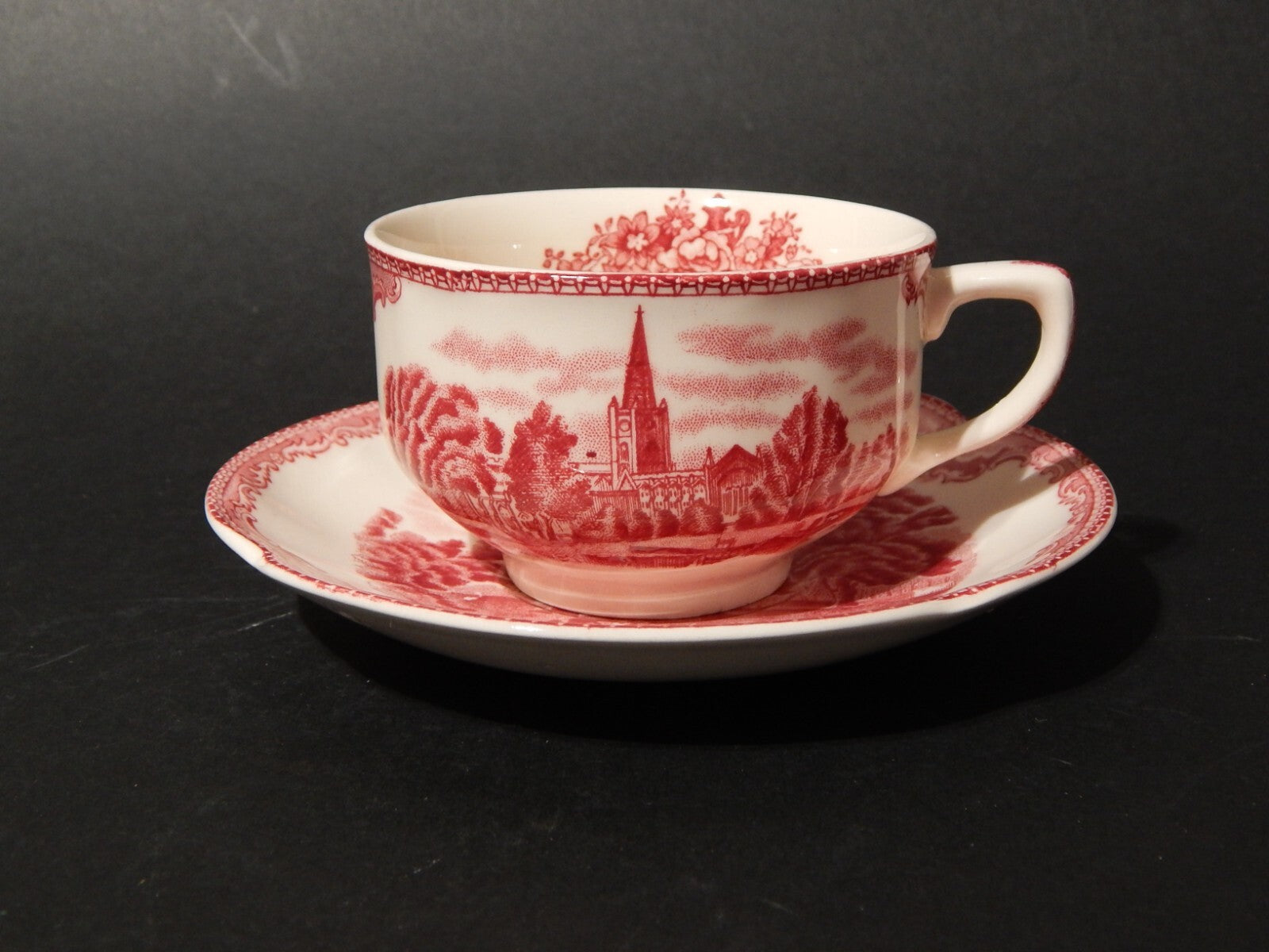 VINTAGE JOHNSON BROS OLD BRITAIN CASTLE TAZZA DA TE' SEMI PORCELLANA ROSSO