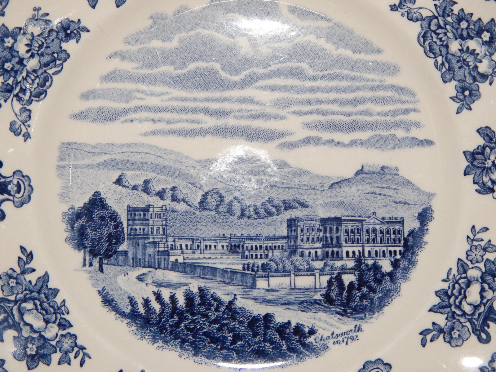 VINTAGE JOHNSON BROS PIATTO OLD BRITAIN CASTLE BLU PORCELLANA DIFETTO #1901