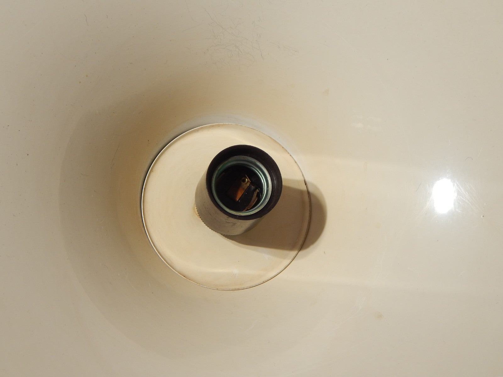 Il lampadario misura 49 cm di diametro e 23 cm di altezza, in totale con il filo il lampadario misura 82 cm, sono presenti piccoli segni di usura