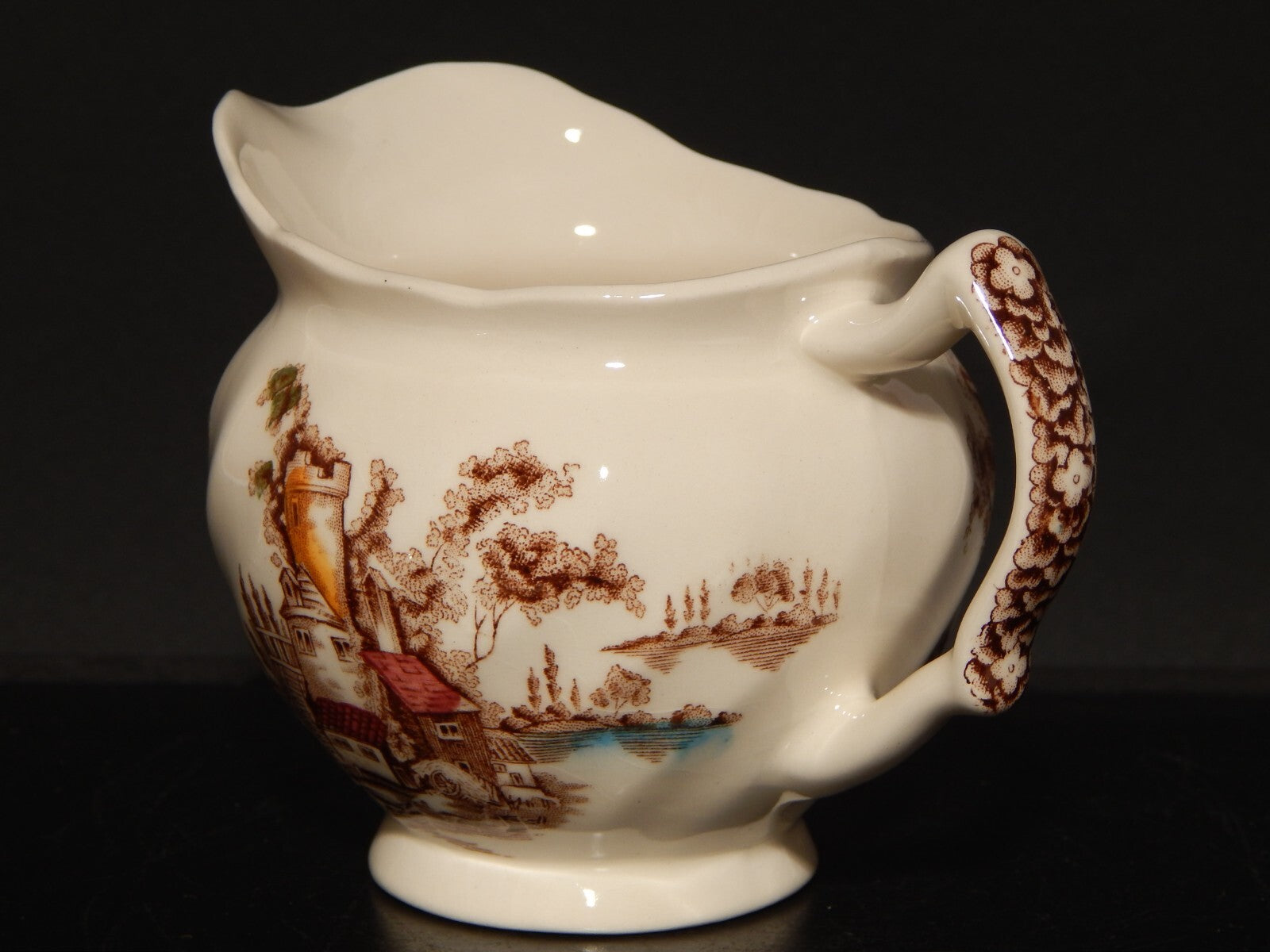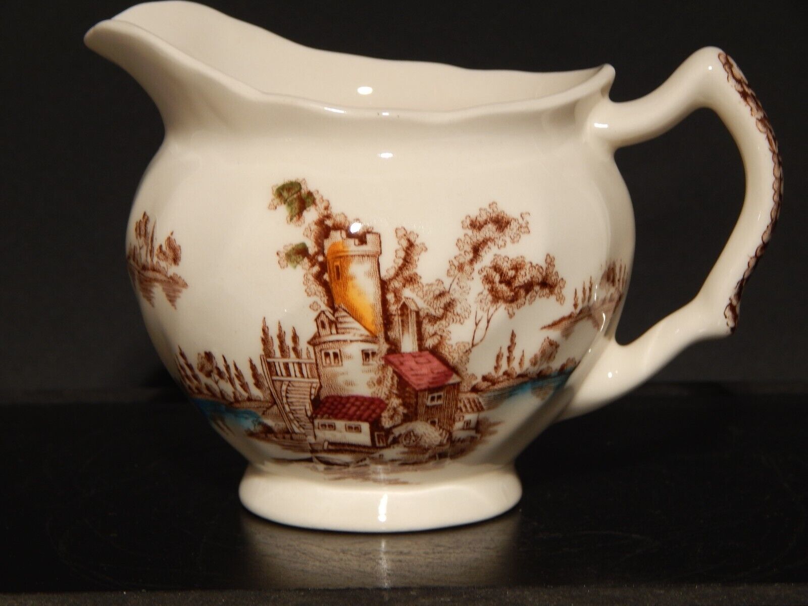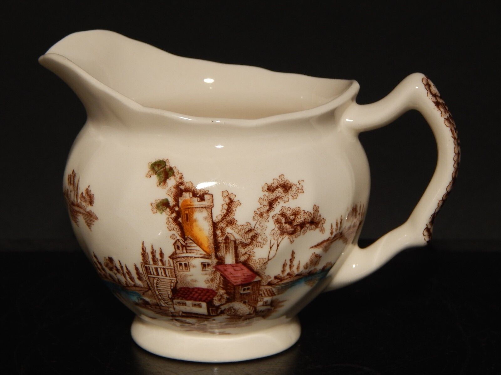 VINTAGE LATTIERA BRICCO SEMI PORCELLANA JOHNSON BROS THE OLD MILL STAMPA A MANO