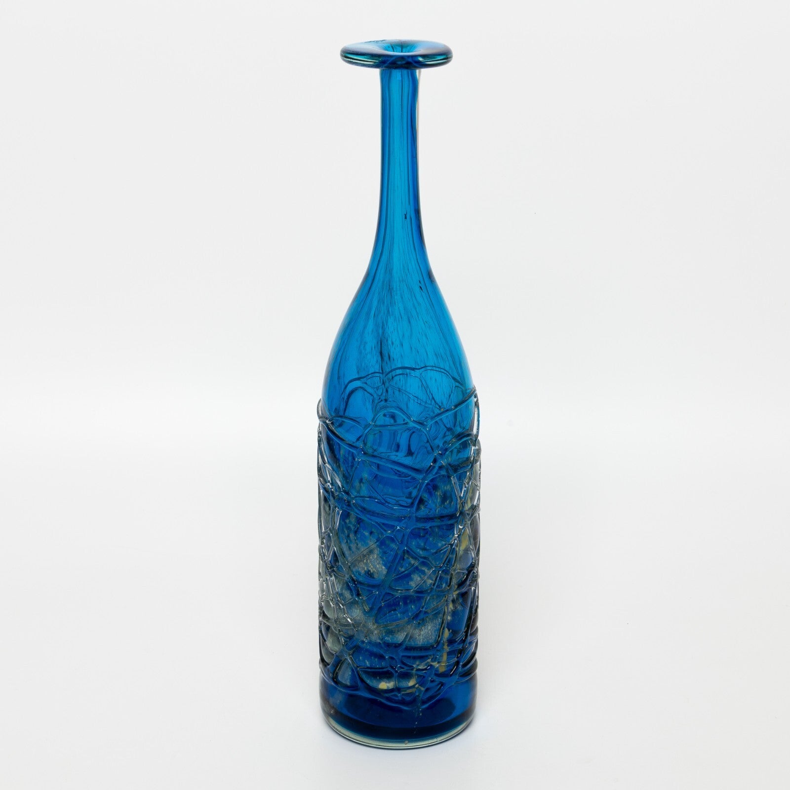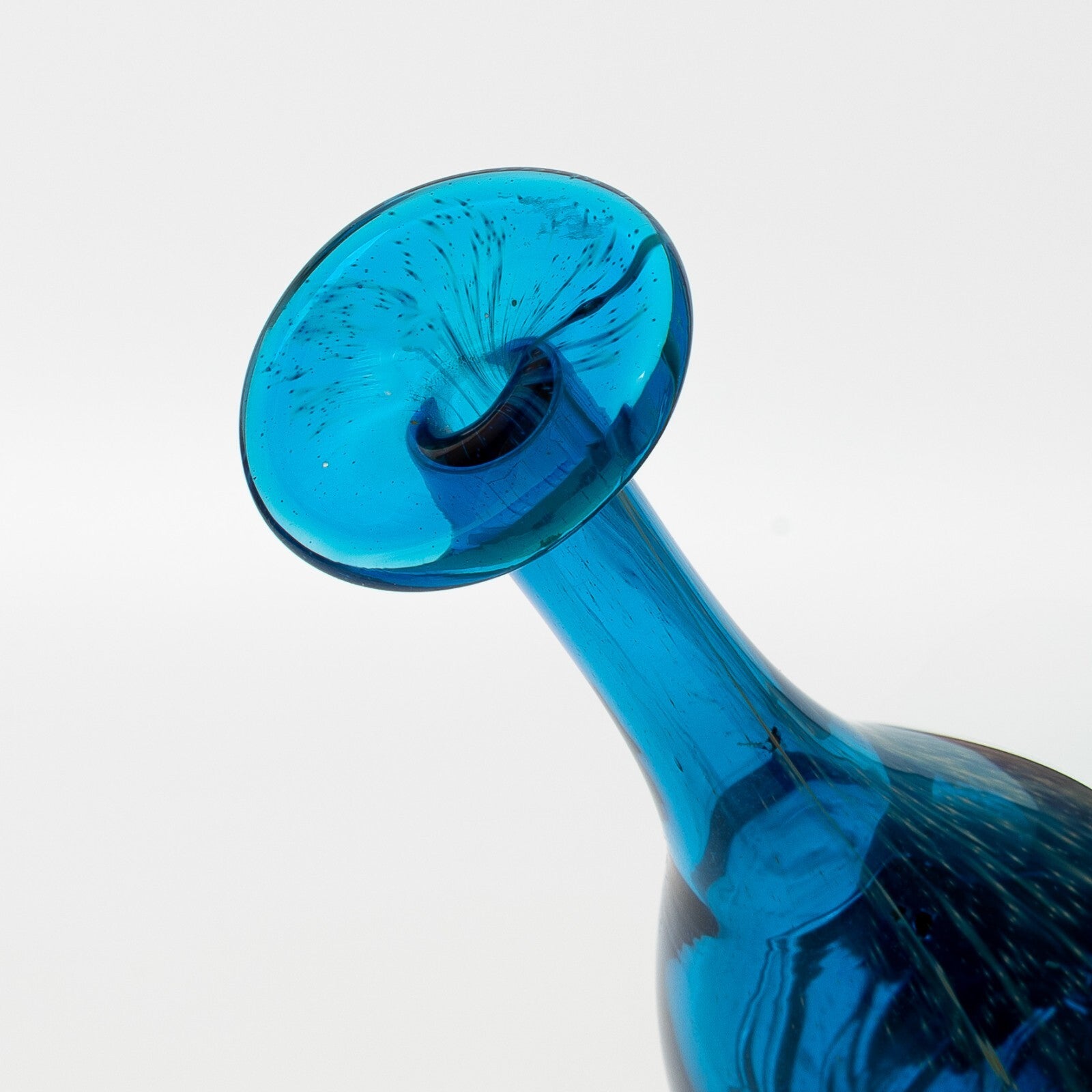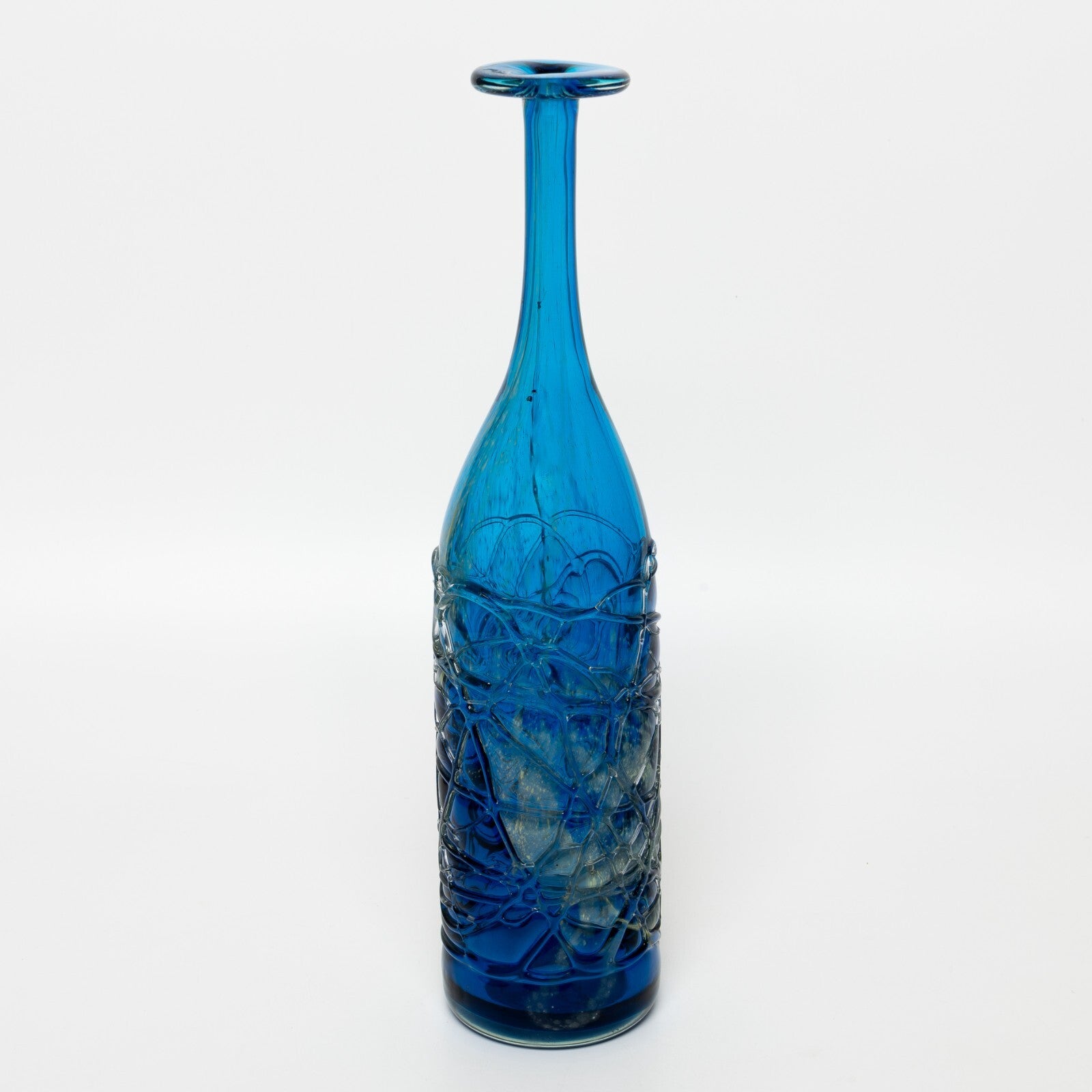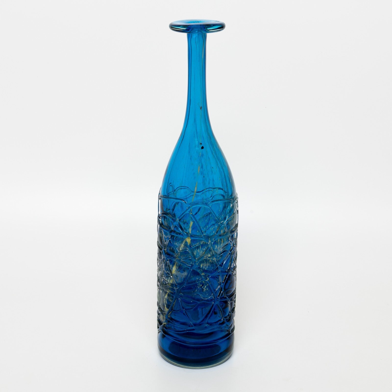 VINTAGE MODERNARIATO VASO A BOTTIGLIA VETRO SOFFIATO MDINA MALTA BLUE SUMMER