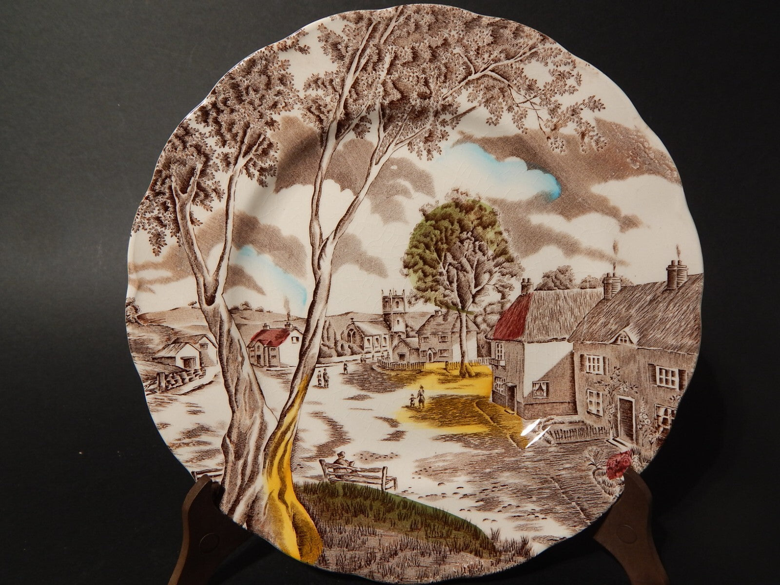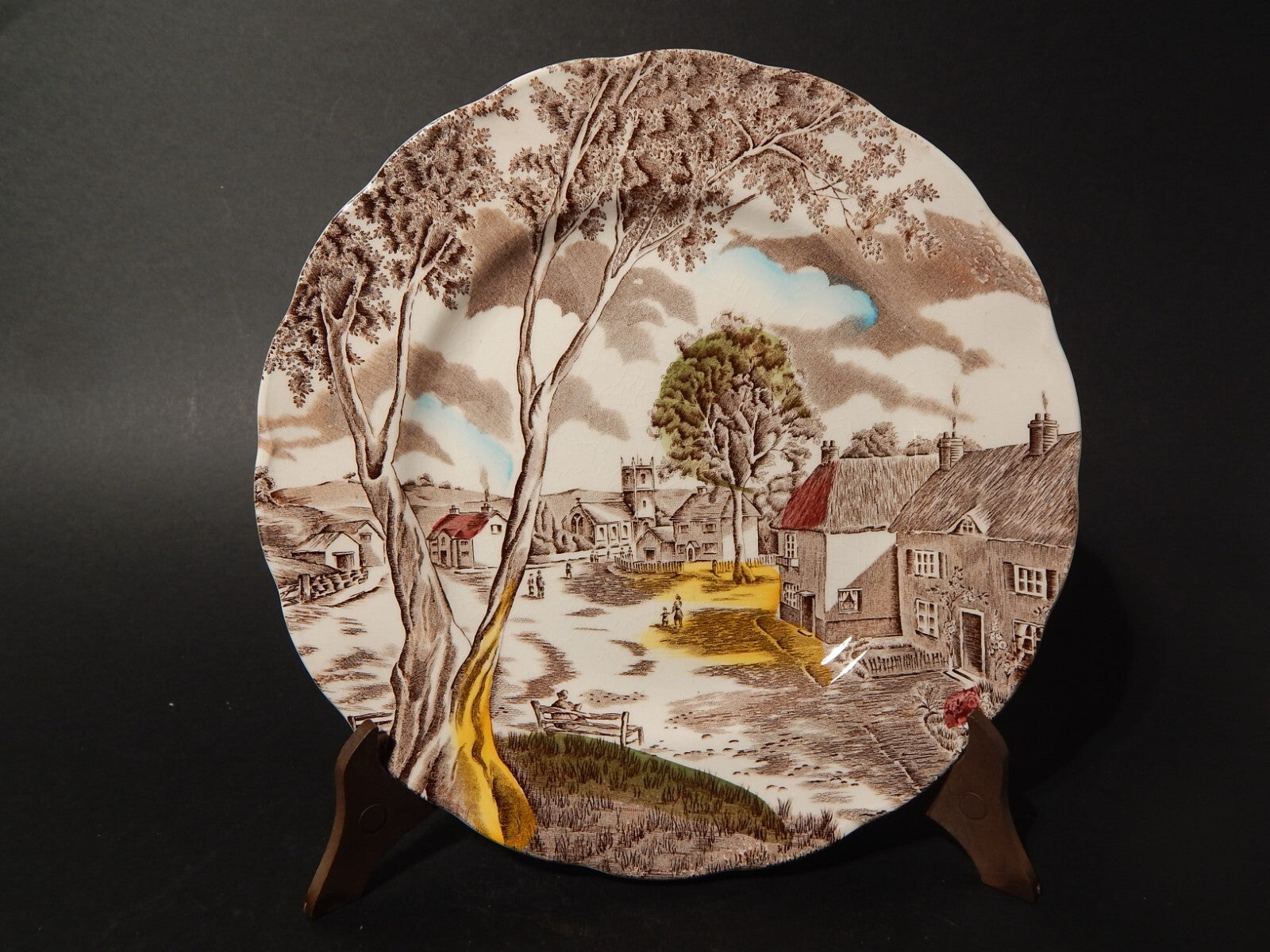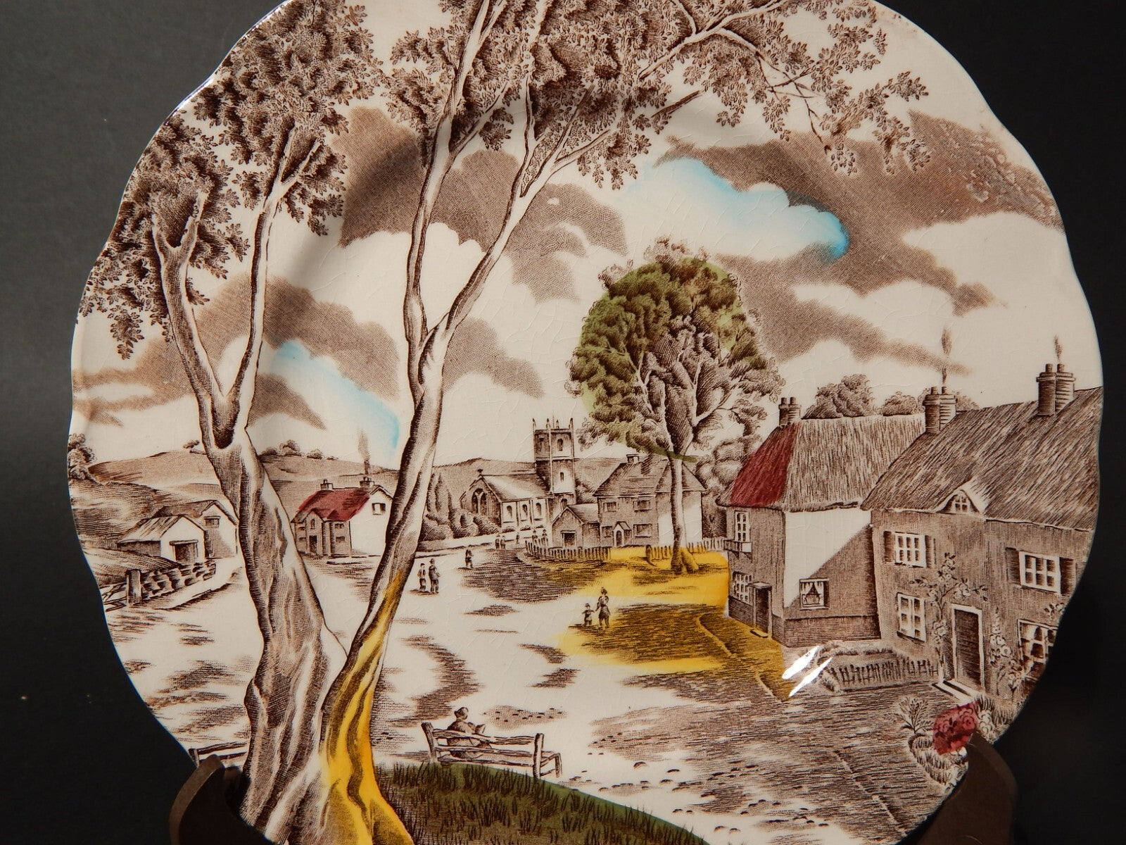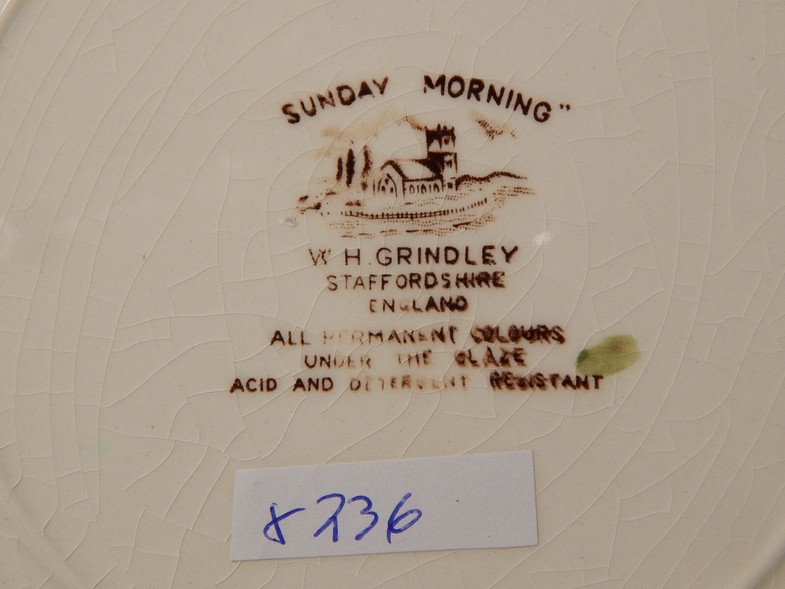 In questa inserzione viene presentato un piatto in ceramica inglese della manifattura W. H. Grindley nel decoro stampato a mano Sunday Morning