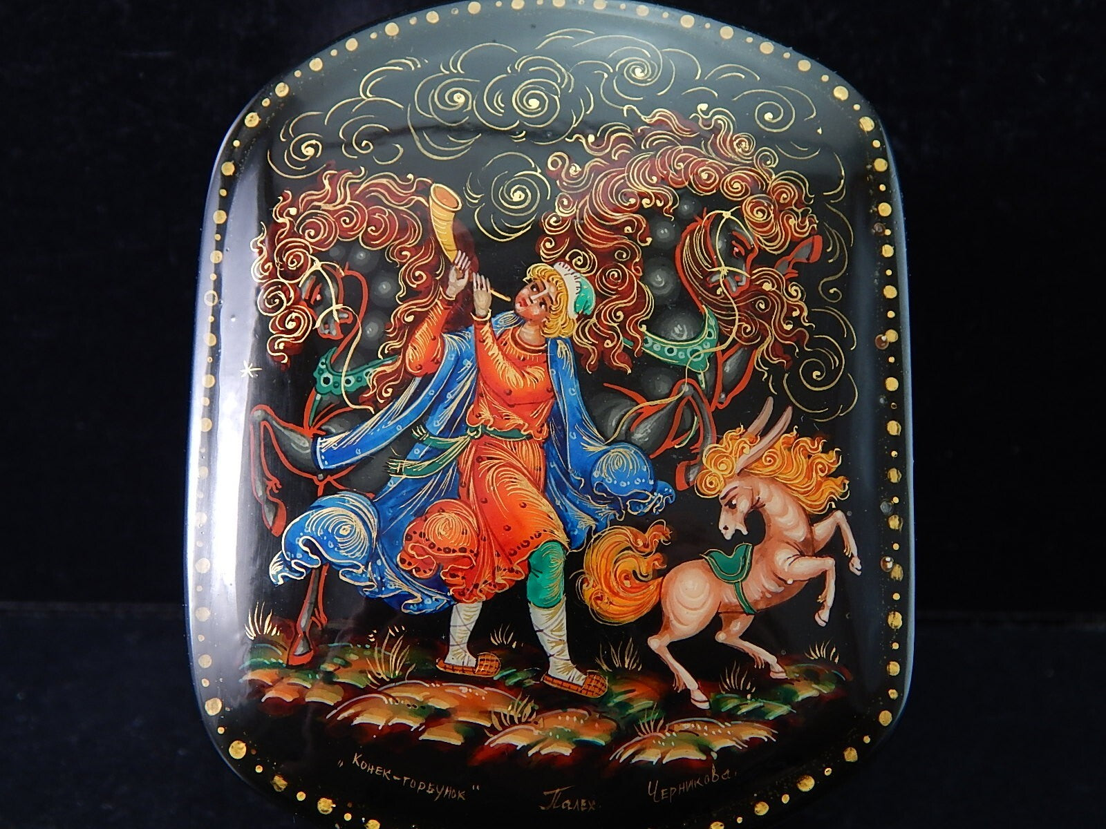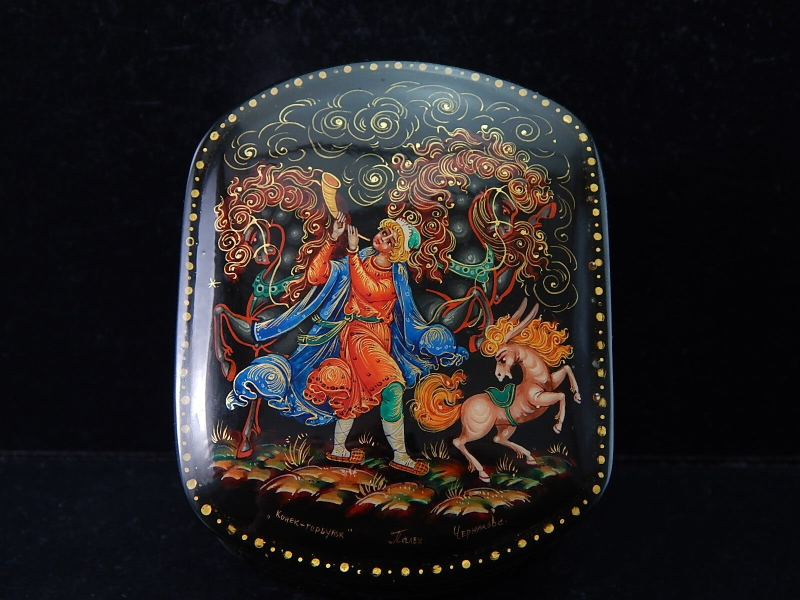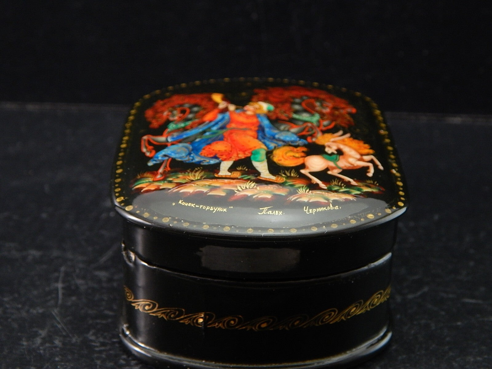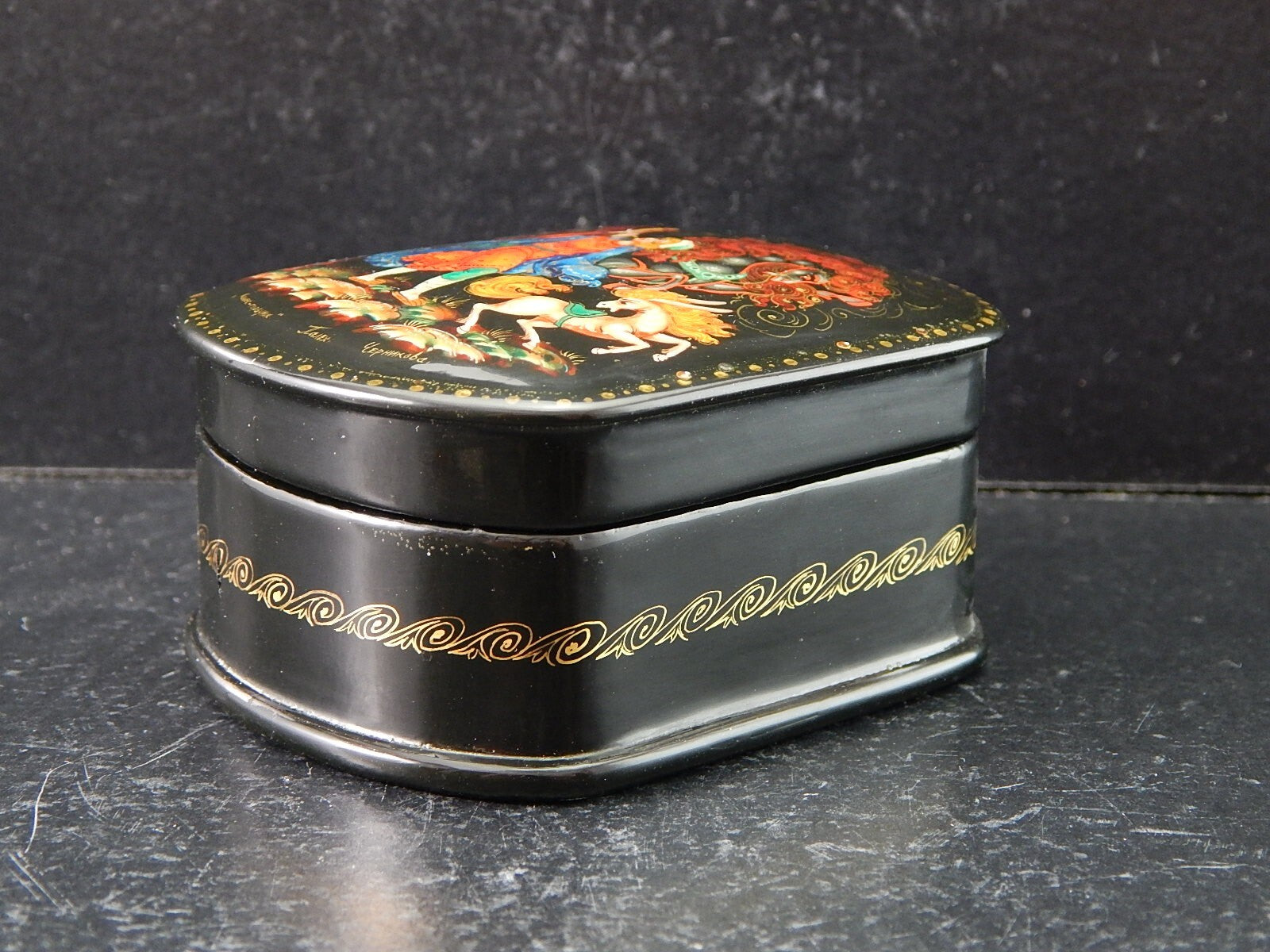 In questa inserzione viene presentata una piccola scatola di legno laccata vintage proveniente dalla Russia, dipinta a mano e firmata
