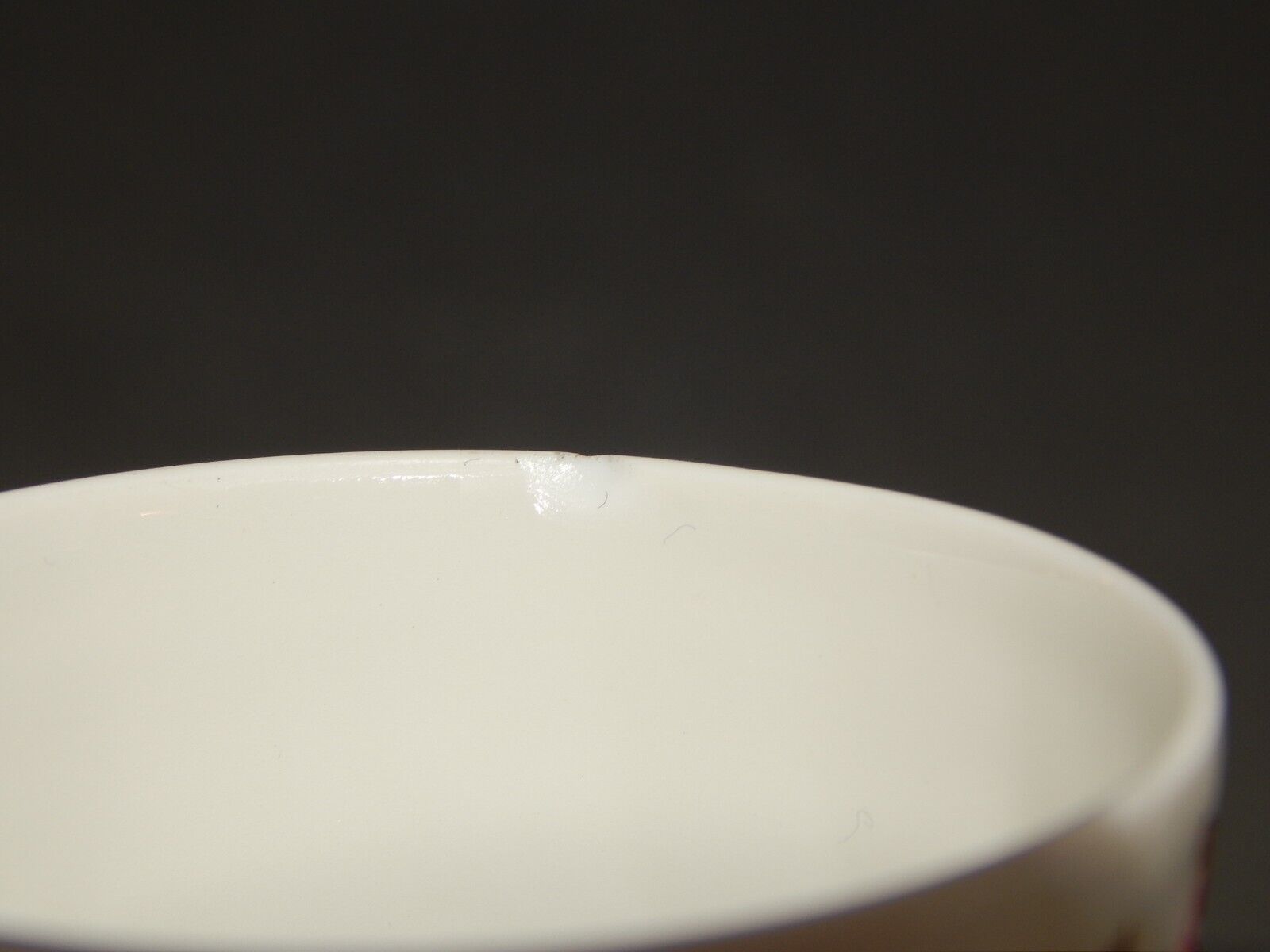 La tazzina misura 5,5 cm di diametro e 5,5 cm di altezza e il piattino 11 cm di diametro, la tazzina presenta una micro scheggiatur sul bordo