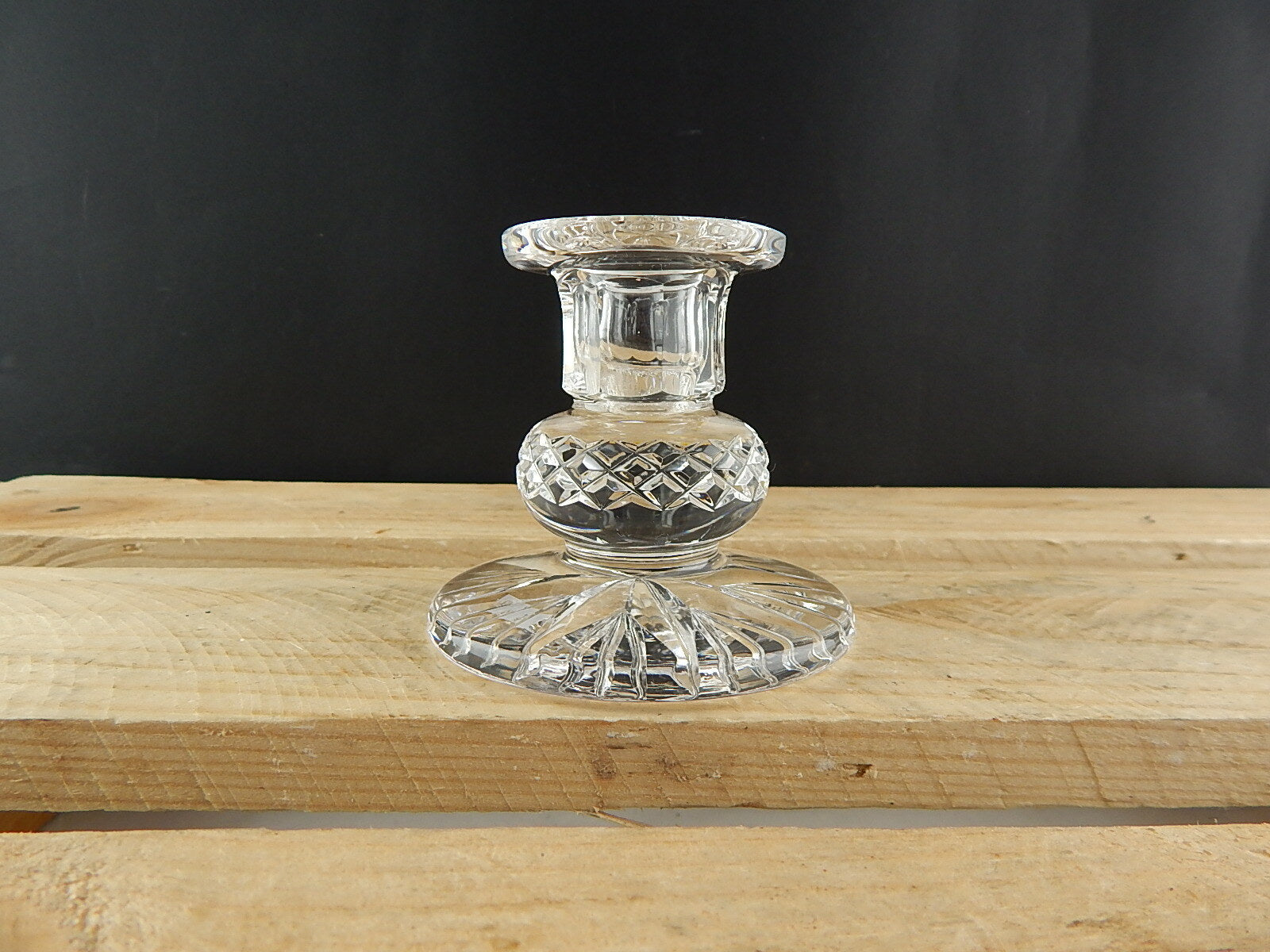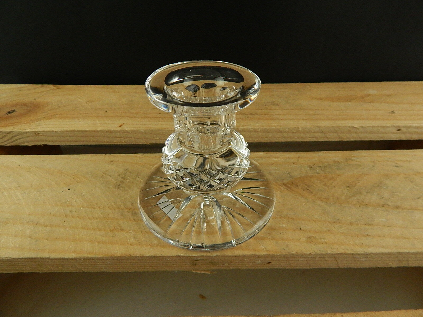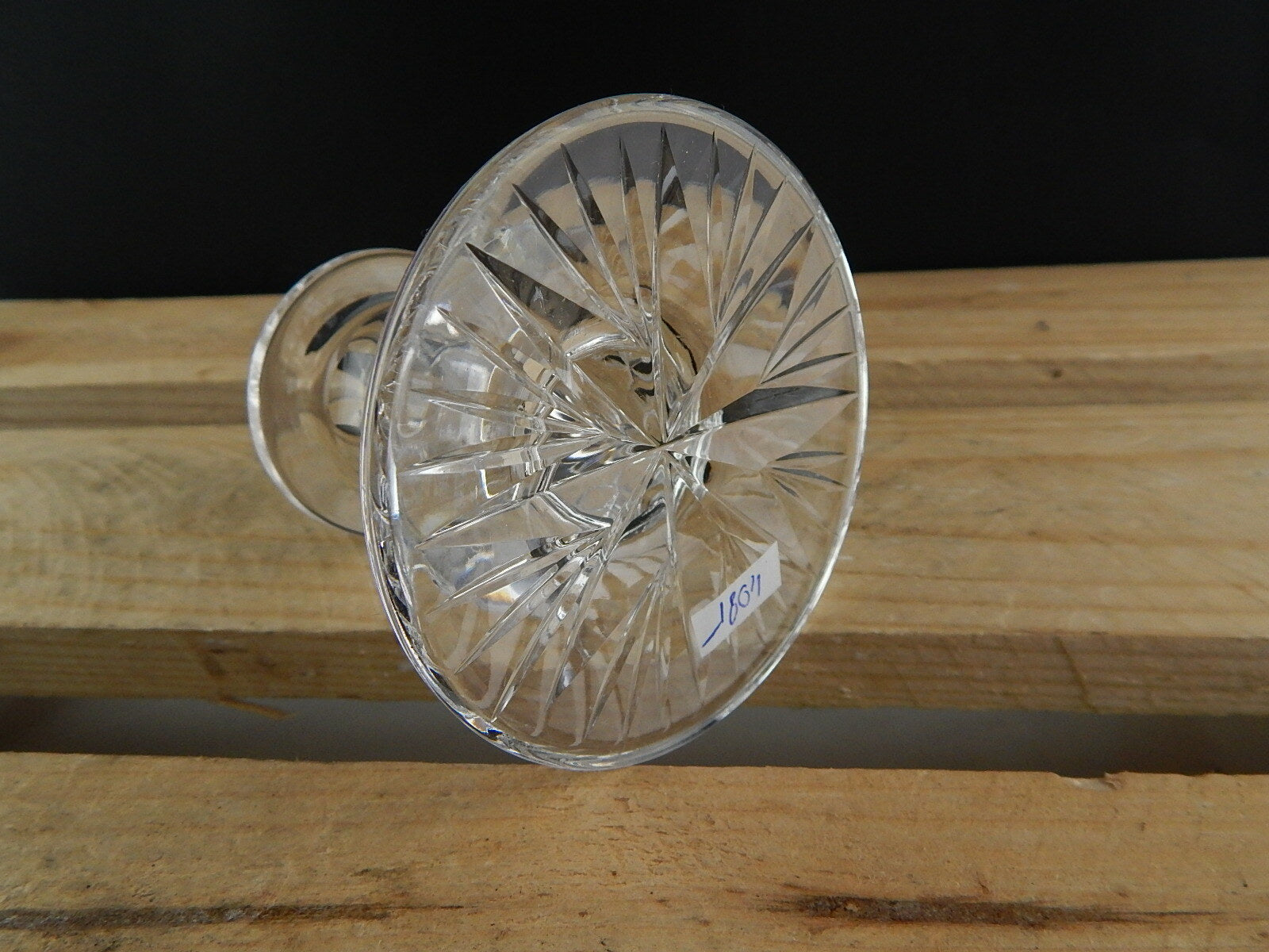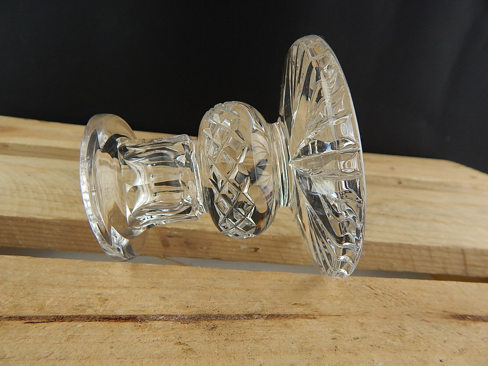 In questa inserzione viene presentato un porta candela in cristallo molato boemo. Il porta candela misura 8 cm di altezza e 8,5 cm di diametro alla base
