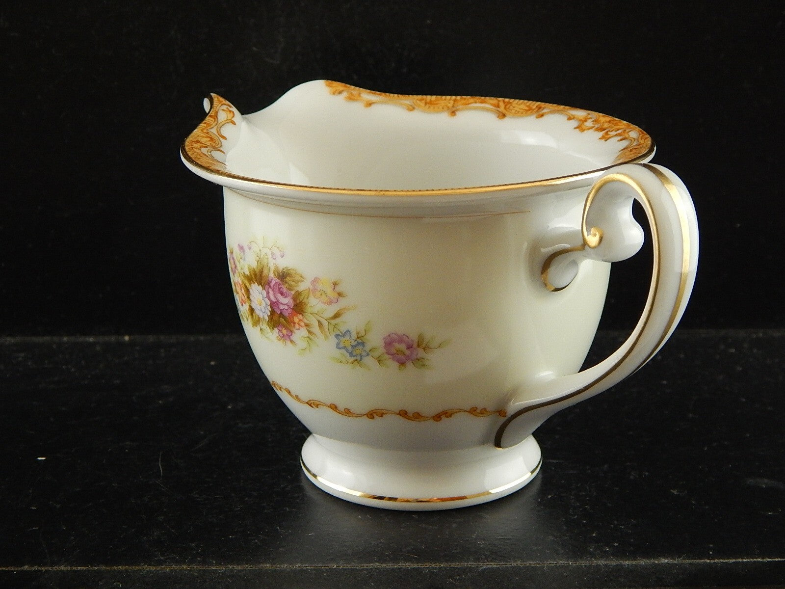 Il servizio è composto da 6 tazze che misurano 9,5 cm di diametro e 5,5 cm di altezza, da 6 piattini che misurano 14,5 cm di diametro, una zuccheriera che misura 13 cm di diametro e 10 cm di altezza, una lattiera che misura 14 cm dal manico al becco e 8 cm di altezza