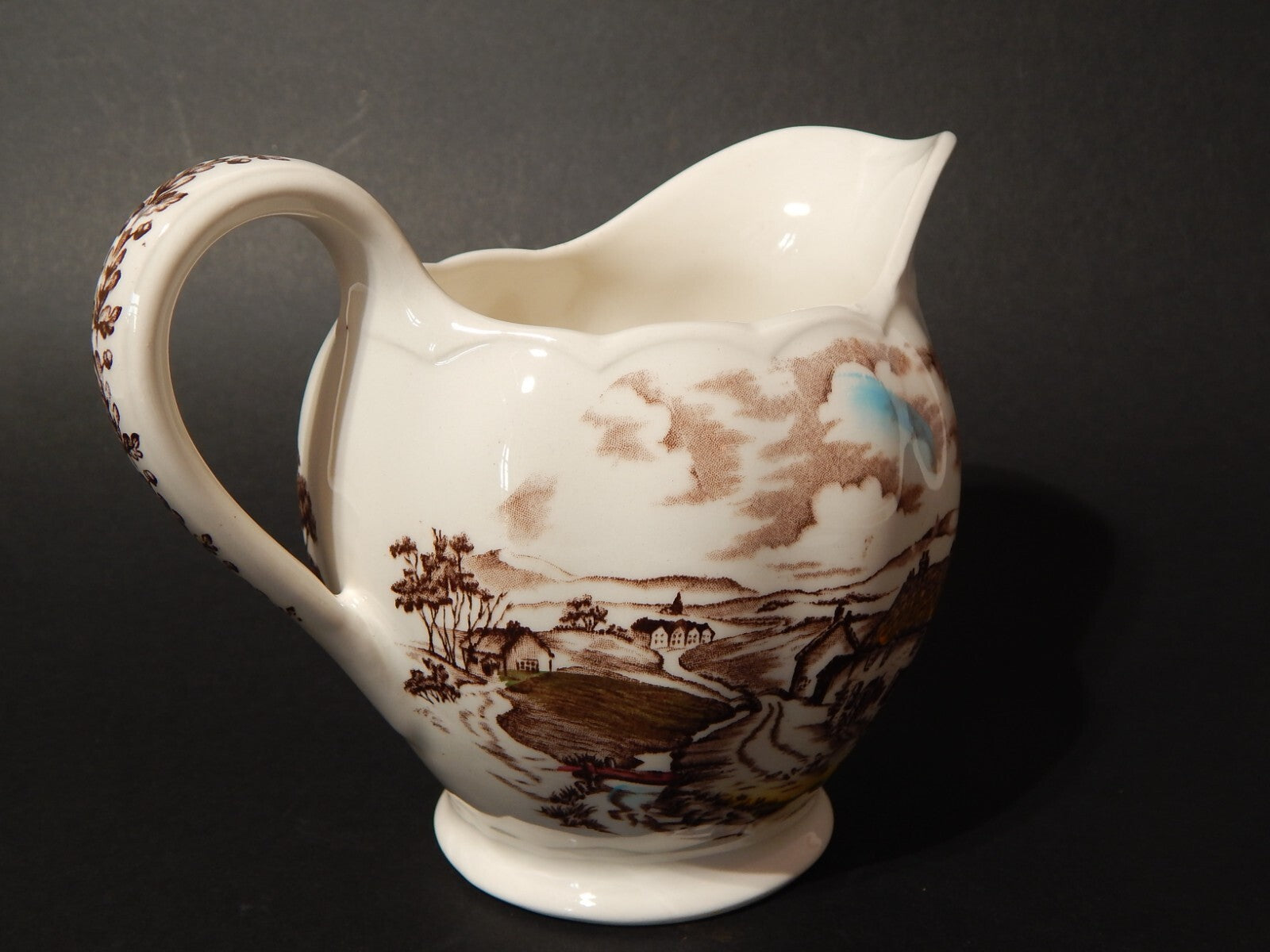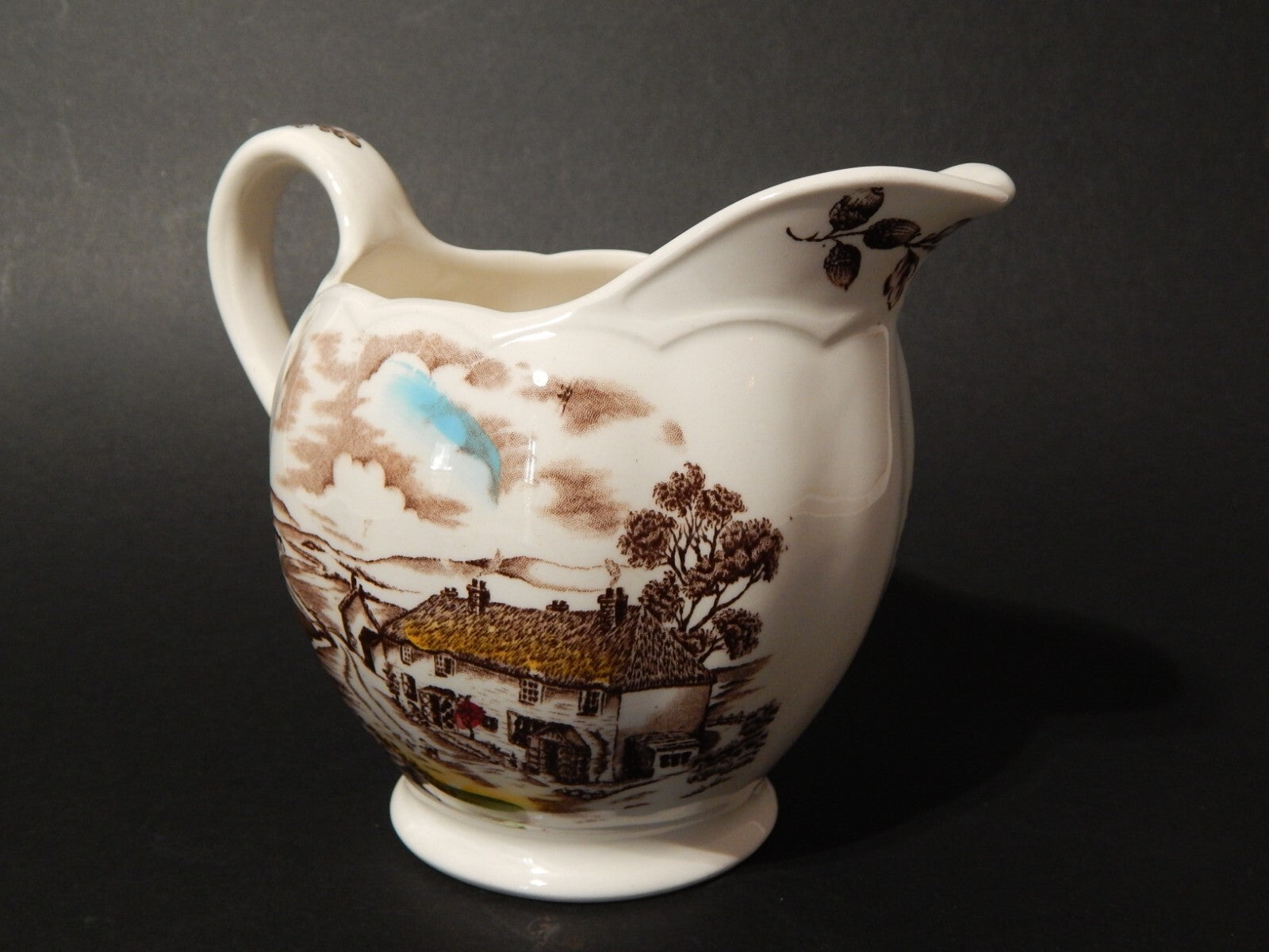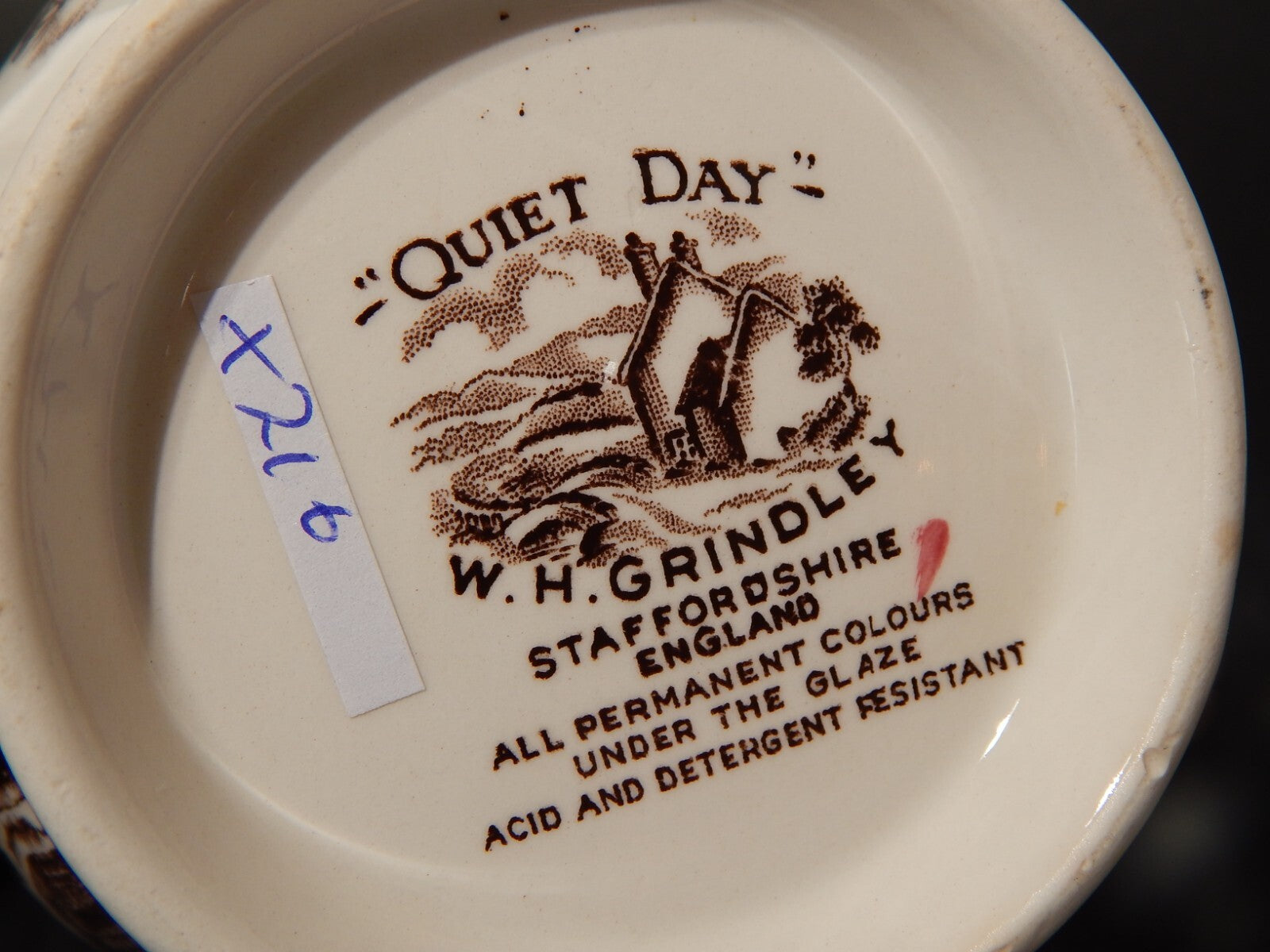 In questa inserzione viene presentata una lattiera o caraffa in ceramica inglese della manifattura W. H. Grindley nel decoro stampato a mano Quiet day