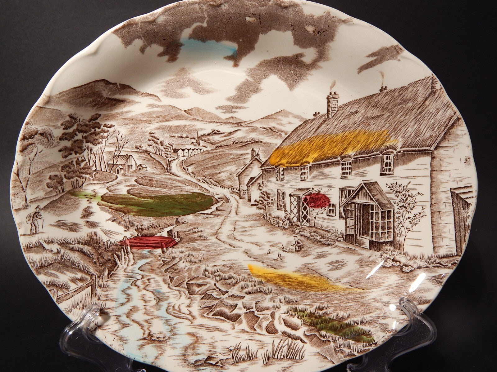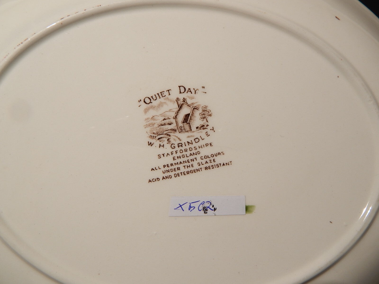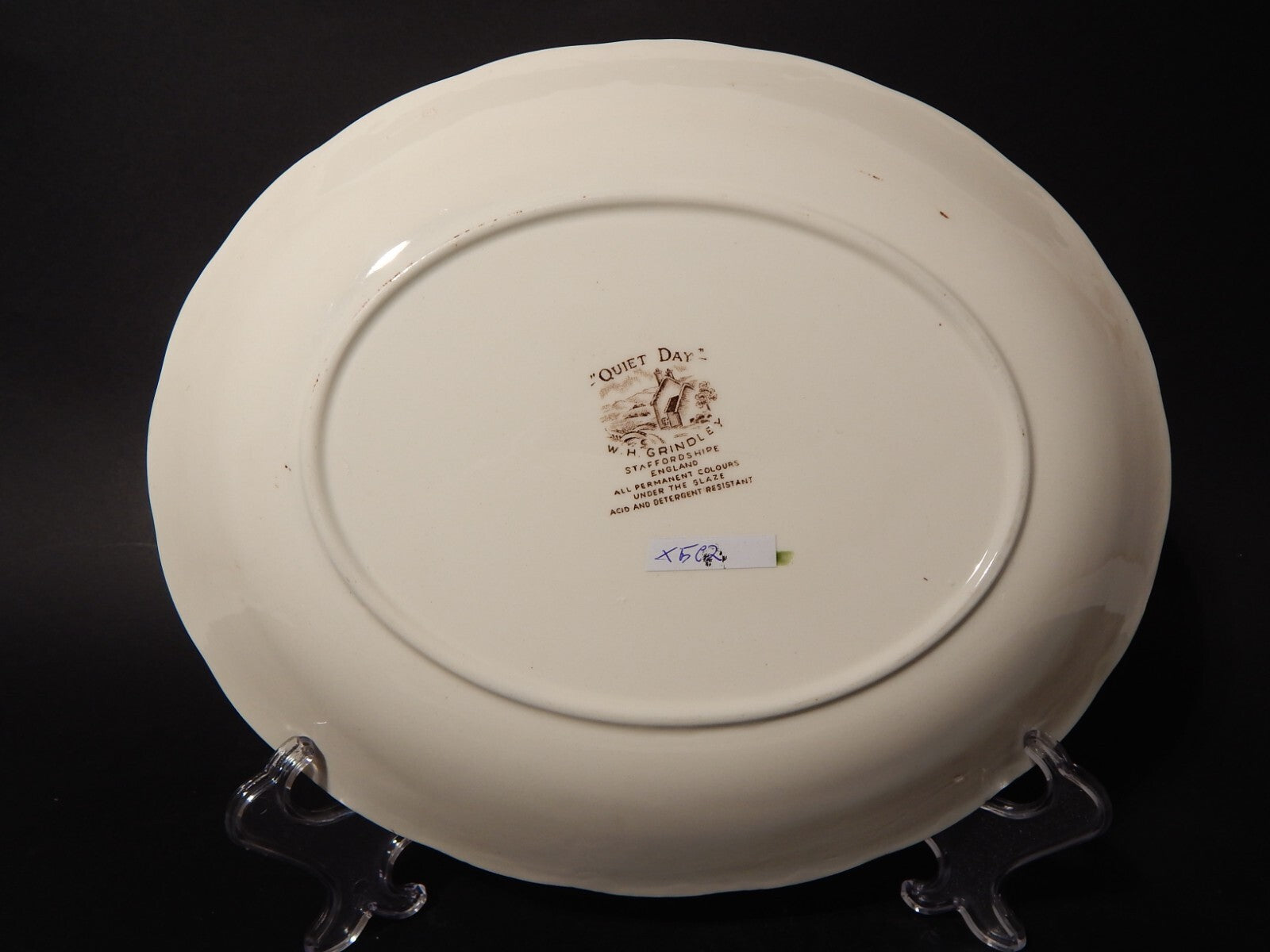 VINTAGE RARO VASSOIO OVALE FONDO CERAMICA W. H. GRINDLEY STAMPA MANO QUIET DAY