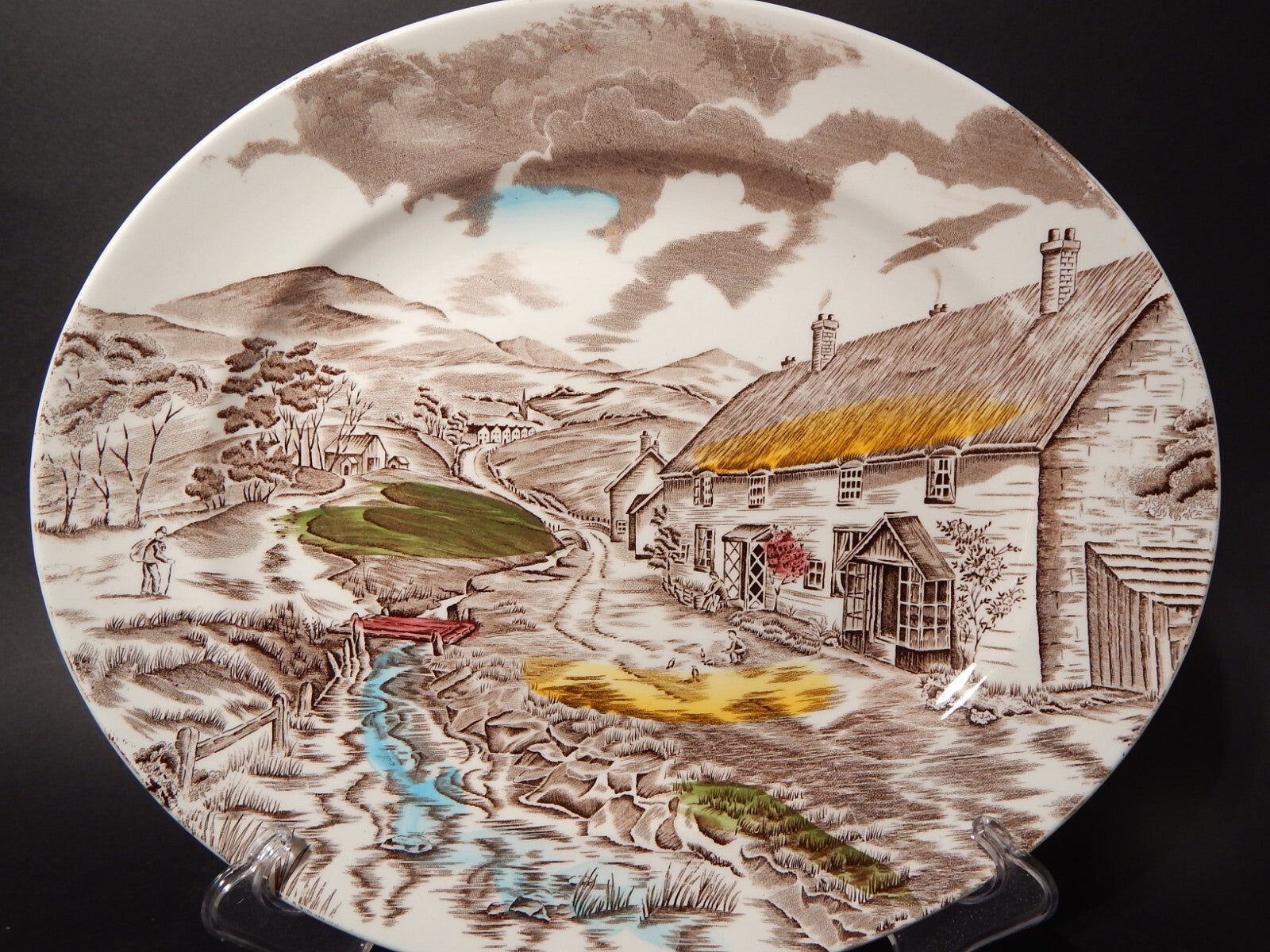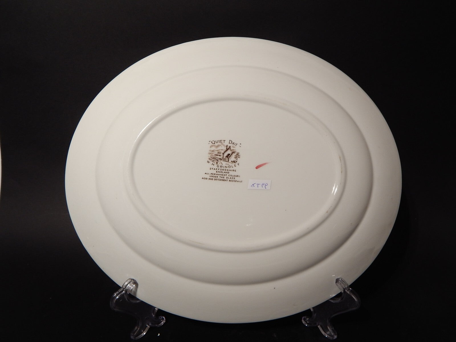 VINTAGE RARO VASSOIO PIATTO OVALE CERAMICA W. H. GRINDLEY STAMPA MANO QUIET DAY