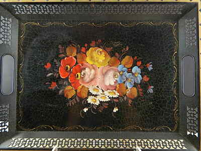 VINTAGE RETRO AUTENTICO VASSOIO GUANTIERA INGLESE METALLO DIPINTO FLOREALE