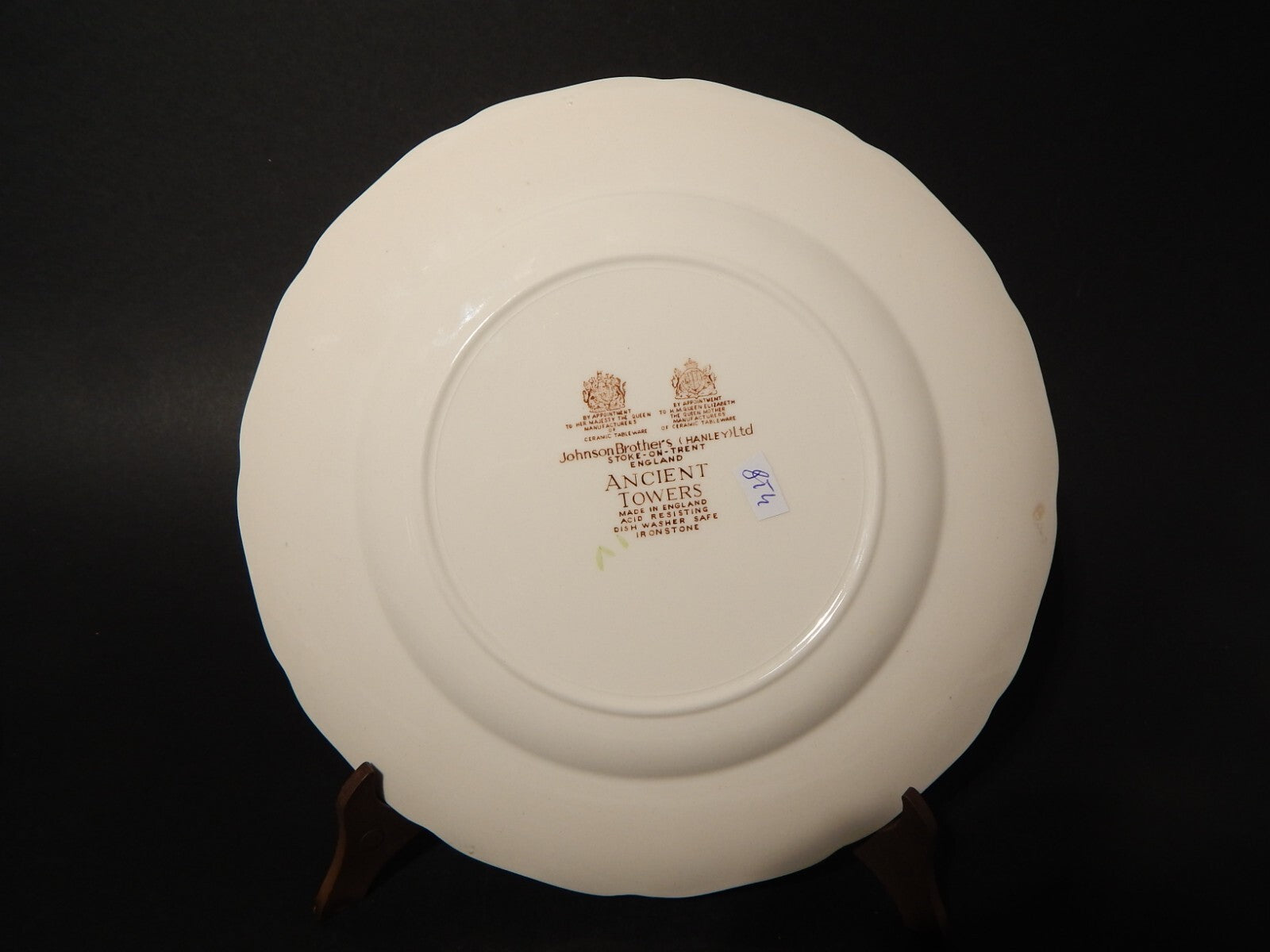 In questa inserzione viene presentato un piatto piano di semi porcellana realizzato dalla manifattura inglese Johnson Bros.nel disegno "Ancient Towers".