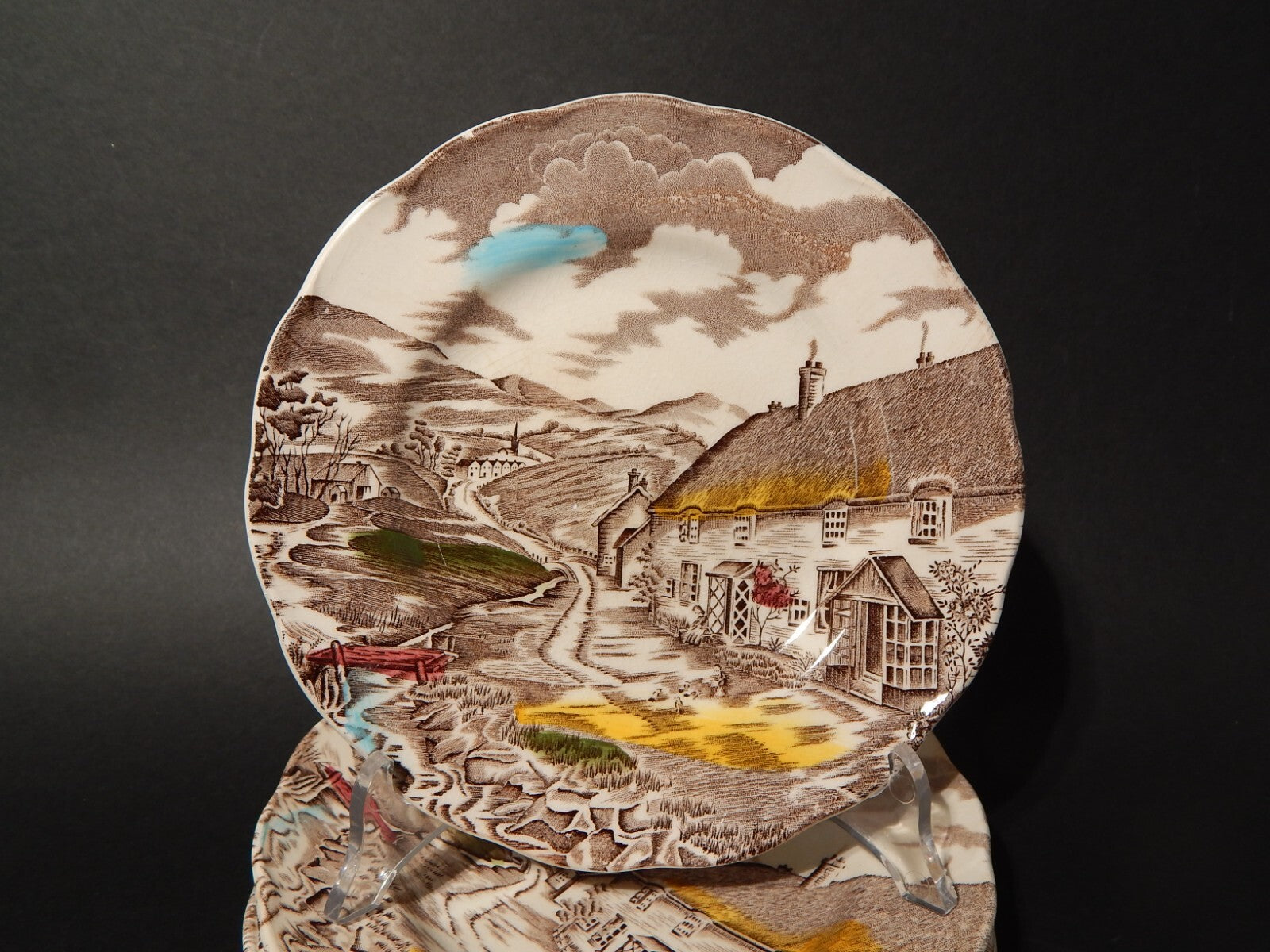In questa inserzione viene presentato un servizio composto da 6 piatti da dolce in ceramica inglese della manifattura W. H. Grindley nel decoro stampato a mano Quiet day