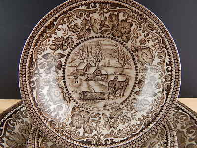 In questa inserzione viene presentato un servizio da macedonia realizzato dalla manifattura inglese Staffordshire Ironstone Tableware in ceramica stampata a mano sotto smalto