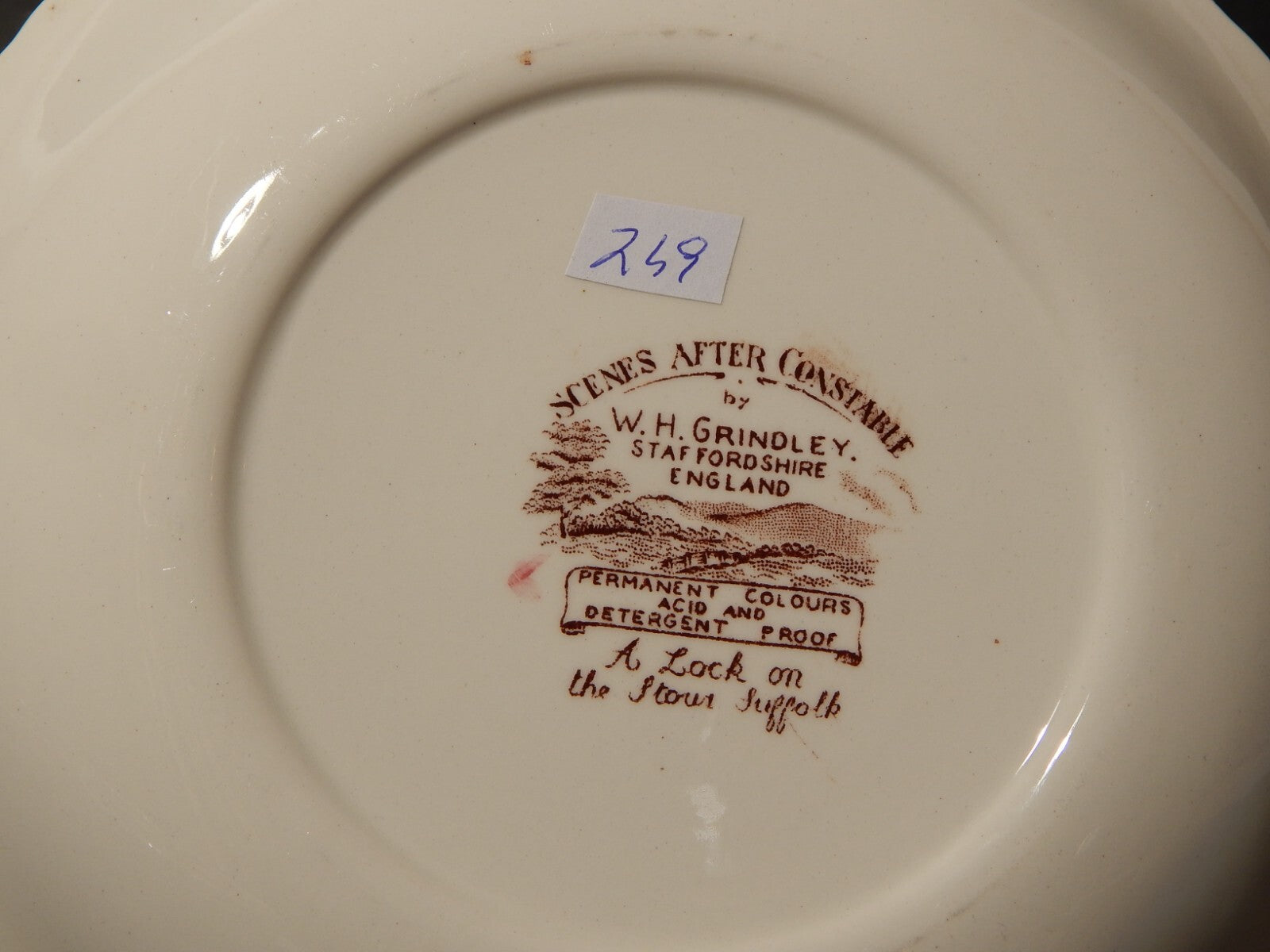 In questa inserzione viene presentato un set composto da 3 ciotole o piatti fondi in ceramica inglese della manifattura W. H. Grindley nel decoro stampato a mano Scenes after Constable