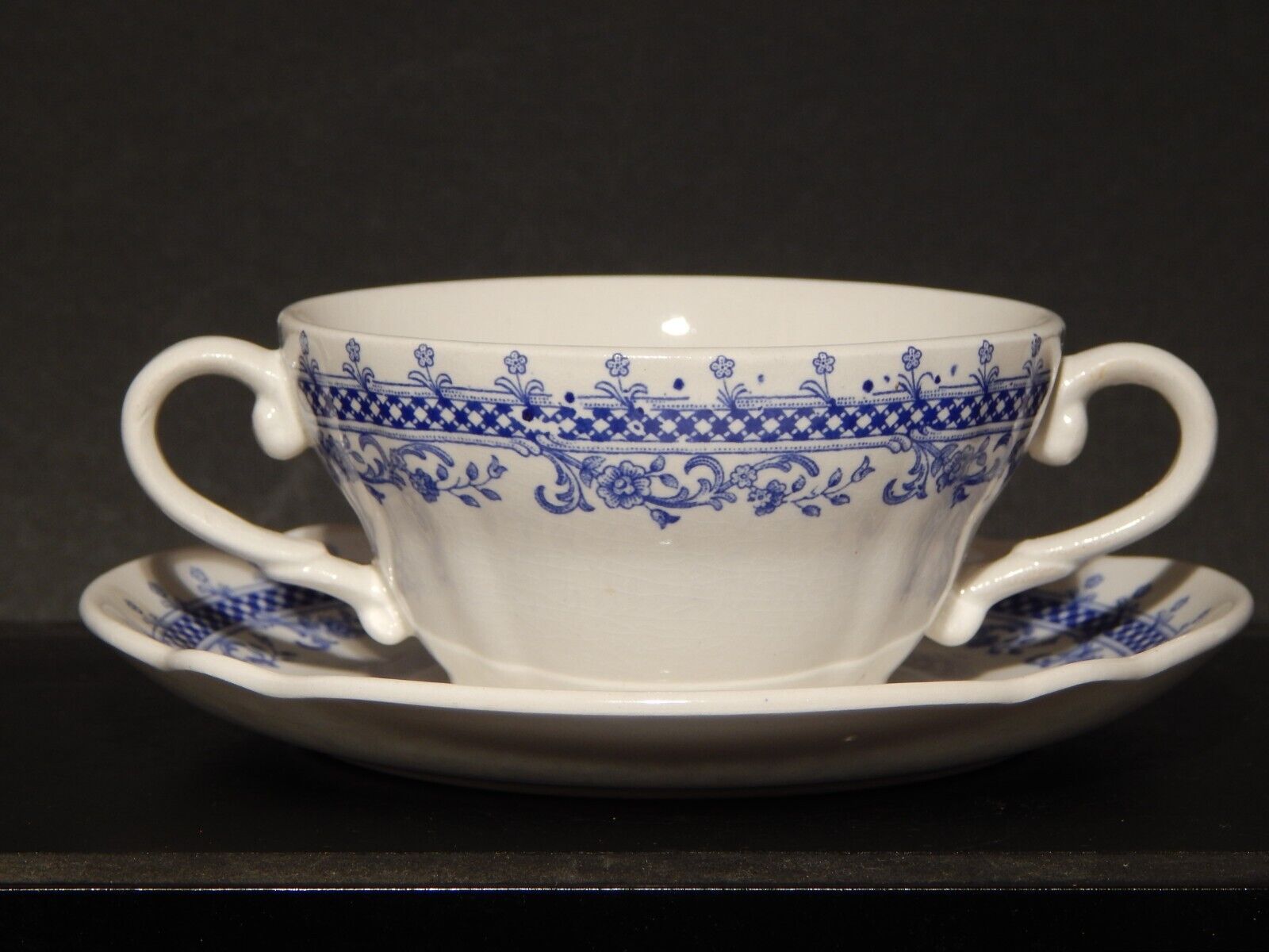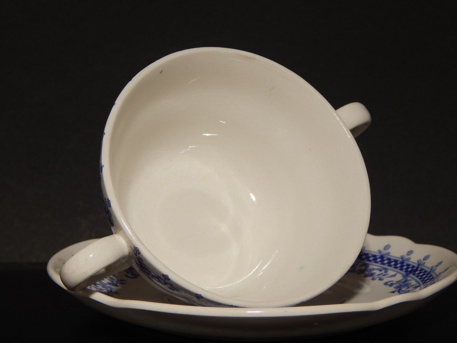VINTAGE TAZZA BRODO CONSOMME' CERAMICA S.C.I. LAVENO DIAMONDSTONE BIANCO BLU