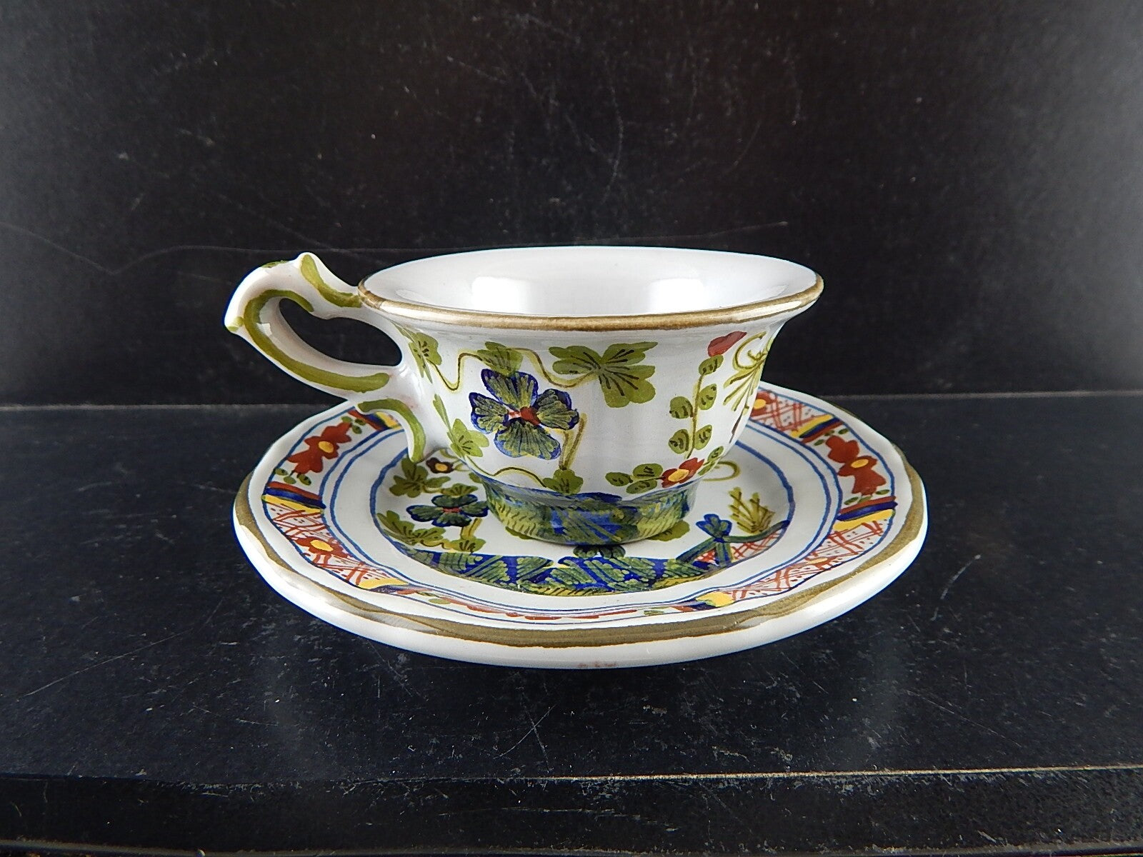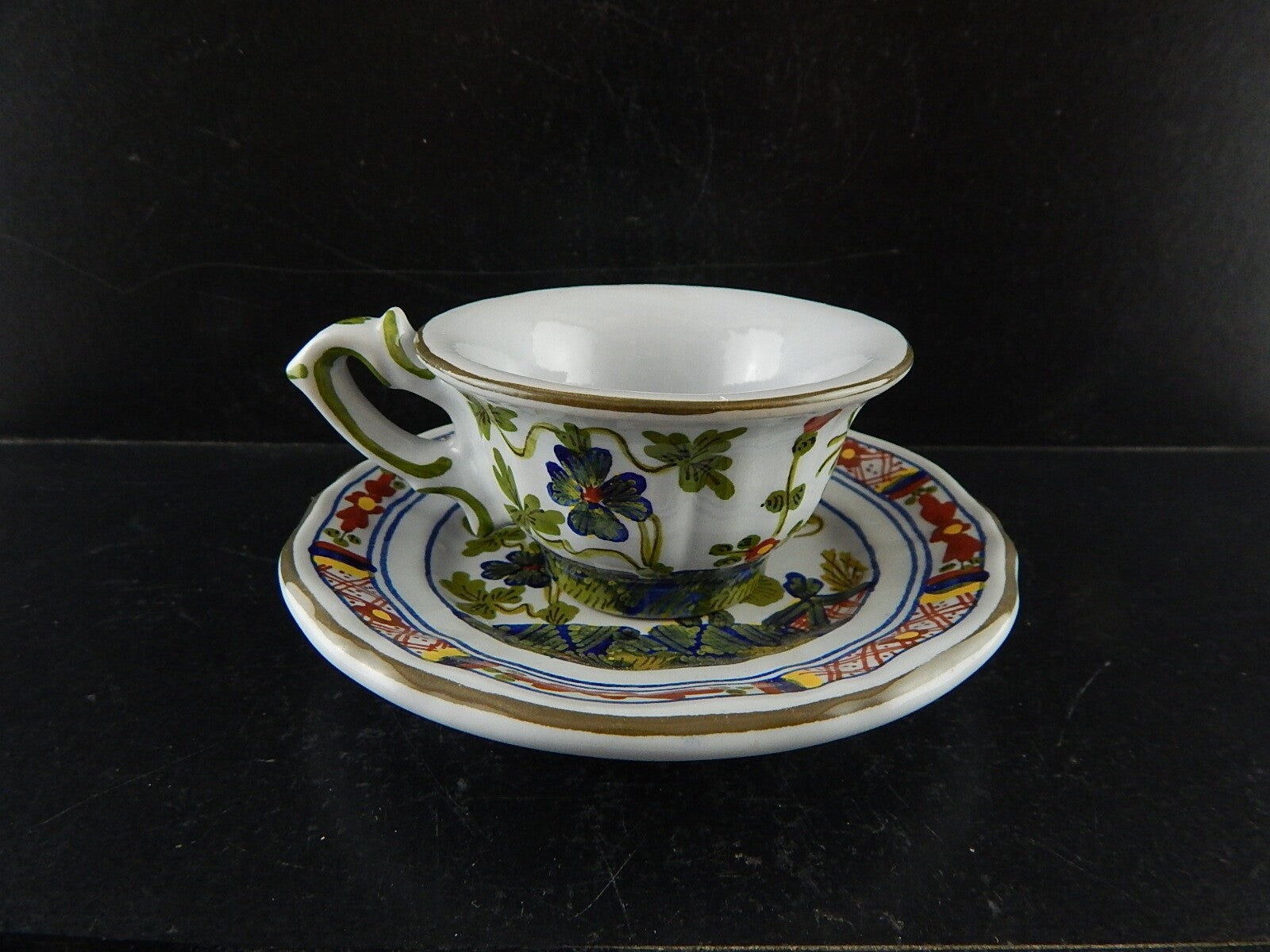 VINTAGE TAZZA CAFFE' AL GAROFANO CERAMICA MAIOLICA VECCHIA FAENZA HANDMADE ITALY